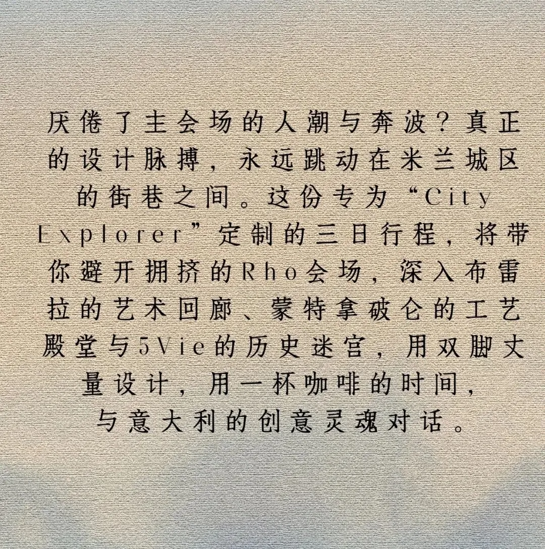 "2026米兰设计周:从城市肌理的漫步到未来灵感的共振。"
