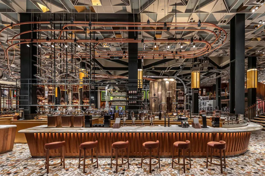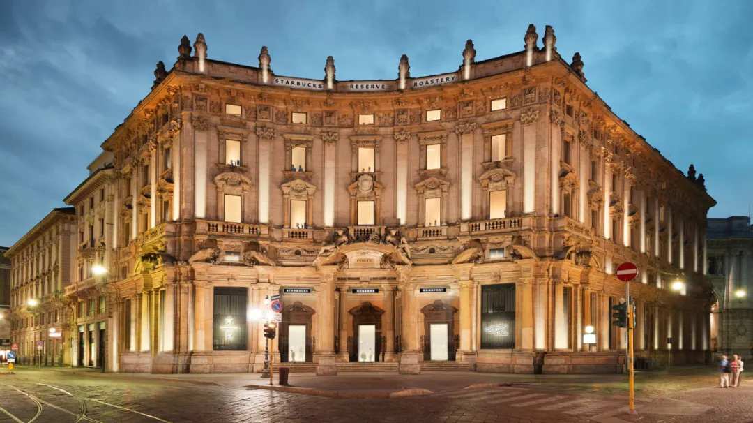 咖啡充电:绕道去一小段路外的Starbucks Reserve Roastery。这是意大利开设的第一家星巴克臻选®烘焙工坊,由星巴克与意大利著名建筑师、设计师 Lucio D‘Amico 合作打造,在古老的邮政总局大楼内部,创造了一个高达22米、充满现代感的铜制烘焙装置与吧台。古典穹顶与现代工业风的碰撞,本身就是一个震撼的室内设计作品。