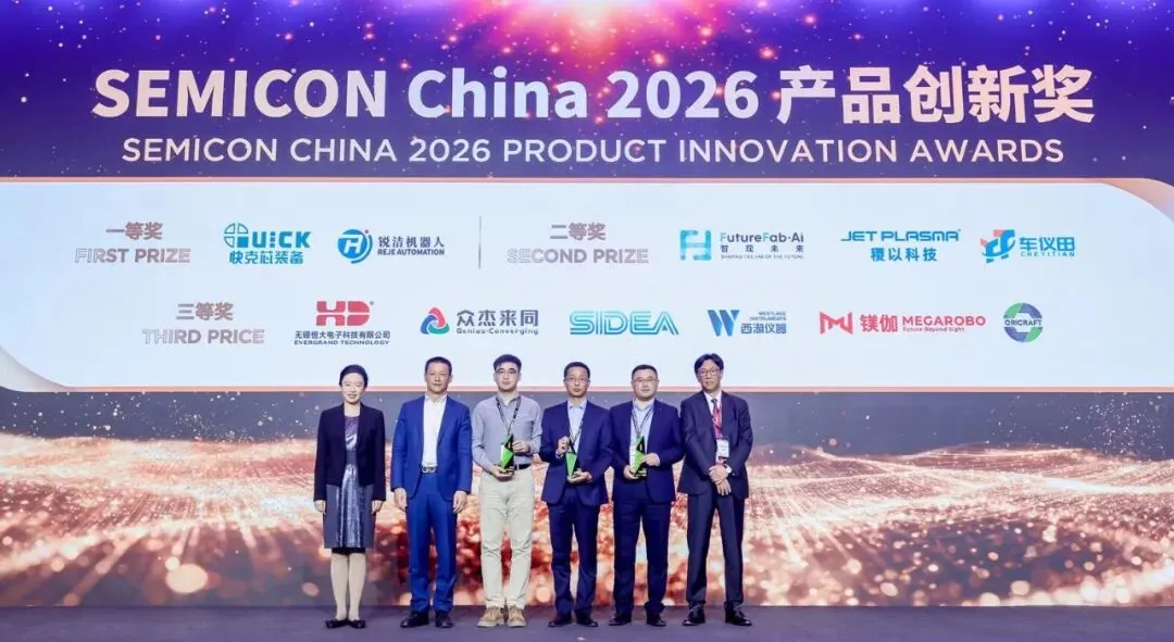 25日晚,“SEMICON China Leadership Gala”(SEMICON China产业领袖晚宴) 颁奖典礼隆重举行,共同见证年度创新产品的诞生。智现未来“AI良率专家”凭借卓越的技术创新性、成熟的产品性能,以及在12吋晶圆厂的显著落地成果,从众多参评产品中脱颖而出,成功斩获产品创新奖“二等奖”。这一殊荣的获得,不仅是对智现未来技术实力与产品价值的高度认可,更彰显了智现未来在半导体智能制造赛道上的领先地位。