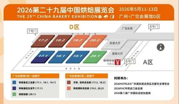2026广州烘焙展将于5月11-13日在广州•广交会展馆D区举办。本届同期举办“中国烘焙高质量发展30周年庆 典”系列活动,全面展示中国烘焙产业三十年辉煌成就与创新突破。同时再度携手HOTELEX酒店餐饮展及Gife连锁加盟展联动举办,为中国烘焙+食饮产业链上下游企业打造更广阔的交流服务平台,加速激发行业新动能,推动中国烘焙业与国 际市场深度接轨,驱动全产业链升级,开启“品质创新向未来”的新篇章!
