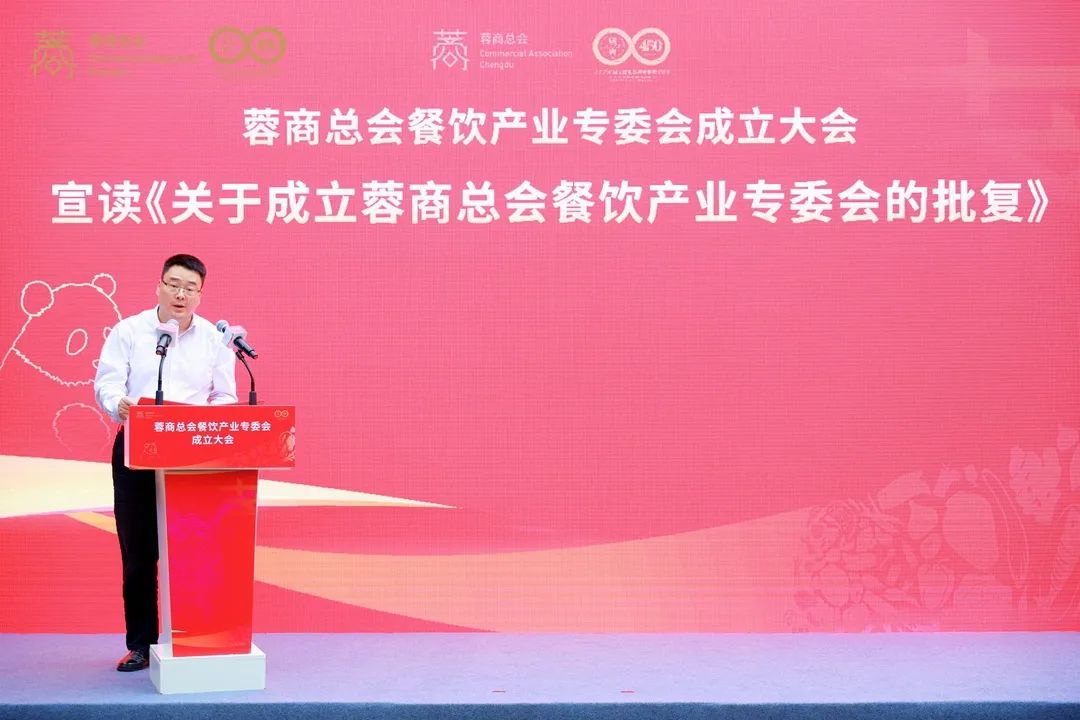 会上,成都市蓉商总会党委书记、副会长兼秘书长毛科宣读了《关于同意成立餐饮产业专委会的批复》,宣布成都别致企业管理有限公司董事长刘勇任专委会主任,成都美食文化交流与创新中心理事长、天府二十四味(成都)商业管理有限公司董事长张蛟任专委会秘书长。
