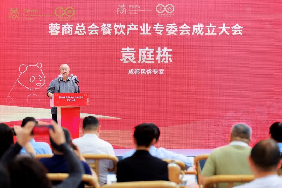 蓉商总会副会长、餐饮产业专委会主任、成都别致企业管理有限公司董事长刘勇,中国民俗学家袁庭栋,蓉商总会副会长、四川省美食家协会副会长马强分别发表讲话。