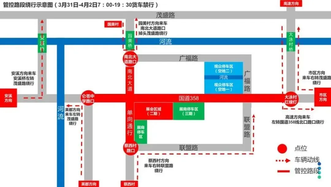 为确保展会期间道路交通安全、有序、畅通,将对展会周边道路采取临时交通管制,在展览期间对车辆进行限制,具体措施如下:
