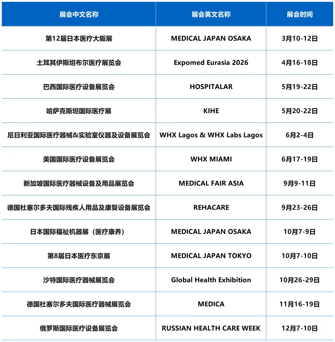 2026年开年,外贸领域暖风频吹。为鼓励企业“走出去”、抓订单、拓市场,全国多地商务主管部门密集出台2026年度境外参展补贴政策。对于医疗器械、医药及大健康领域的企业而言,精准掌握各省的展会目录,是做好全年出海规划的重要基础。