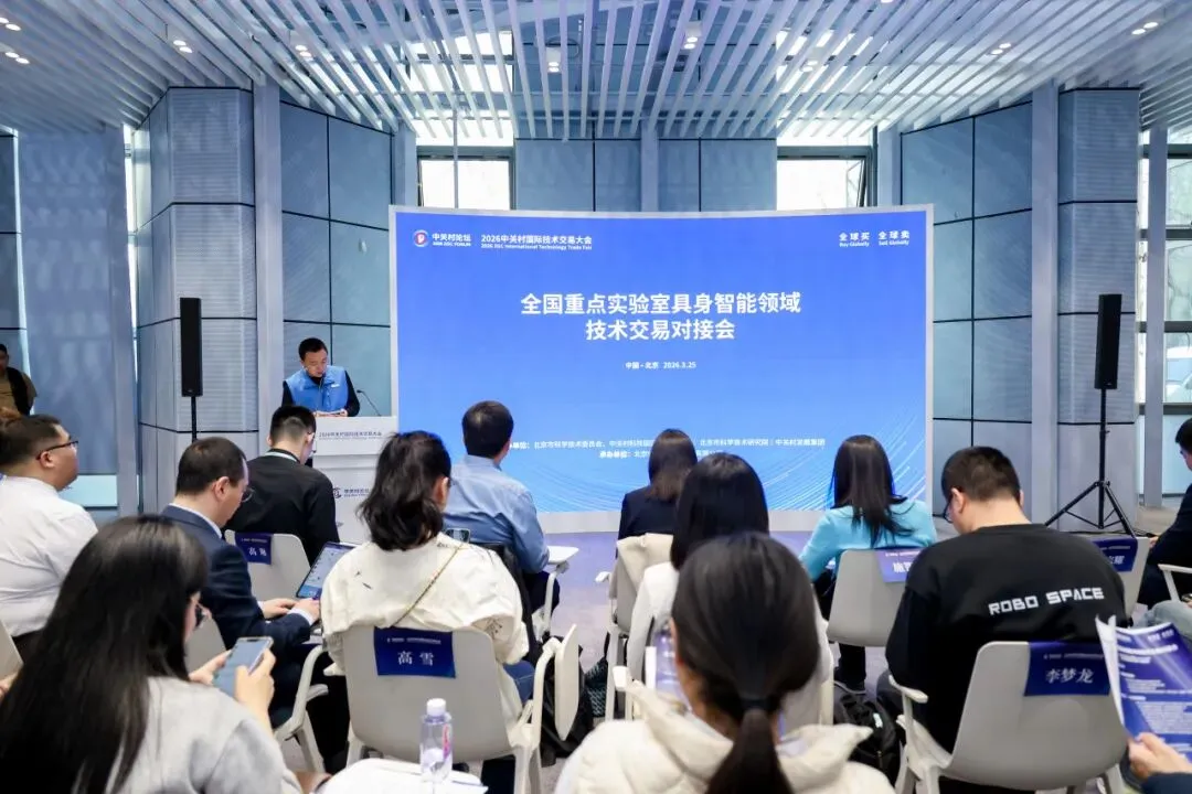 3月25日下午,2026中关村论坛年会中关村国际技术交易大会——全国重点实验室具身智能领域技术交易对接会在中关村国际技术交易中心举办。活动由北京市科学技术委员会、中关村科技园区管理委员会,北京市科学技术研究院,中关村发展集团联合主办,北京中关村科技服务有限公司承办。