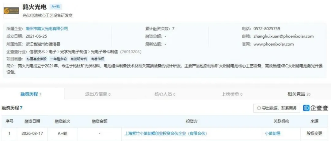 据悉,2026年3月17日,湖州市鹑火光电有限公司再度完成融资,投资方为小苗朗程,金额未披露。