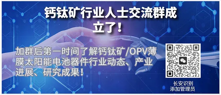 本微信公众号“钙钛矿与OPV薄膜太阳能”所发表内容转载时会注明来源,版权归原出处所有(无法查证版权的或未注明出处的均来源于网络搜集)。转载内容(视频、文章、广告等)只以信息传播为目的,仅供参考,不代表本公众号认同其观点和立场。内容的真实性、准确性和合法性由原作者负责。如涉及侵权,请联系删除,此转载不作为商业用途。