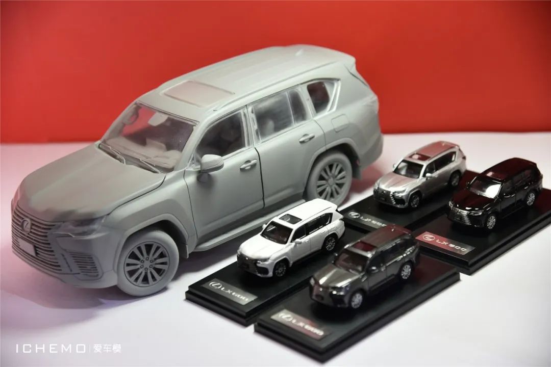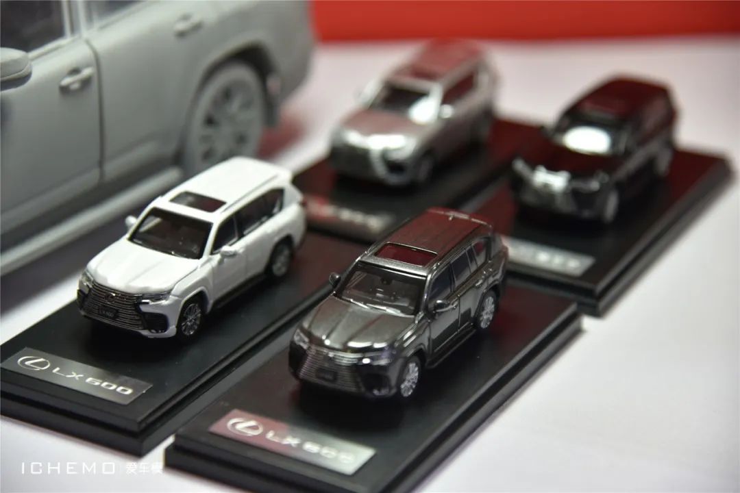同台展示的还有 1:64 合金材质 Lexus LX 600 装饰板样品模型,其项目完成度较高,量产品上市时间、各色上市顺序以 LCD Model 方面信息为准。