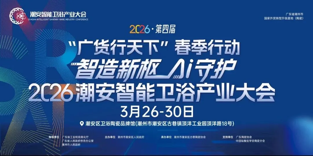 今日,2026潮安智能卫浴产业大会暨第四届潮安智能卫浴博览会在潮州市潮安区古巷镇卫浴陶瓷品牌馆正式拉开帷幕!这场汇聚全国卫浴产业目光的行业盛会,以“智造新枢·AI守护”为核心主题,为期5天(3月26日-3月30日),集结行业精英、前沿科技与优质产能,为全国乃至全球卫浴从业者奉上一场兼具科技感、商贸性与创新性的产业盛宴。