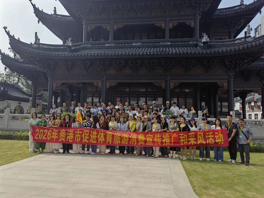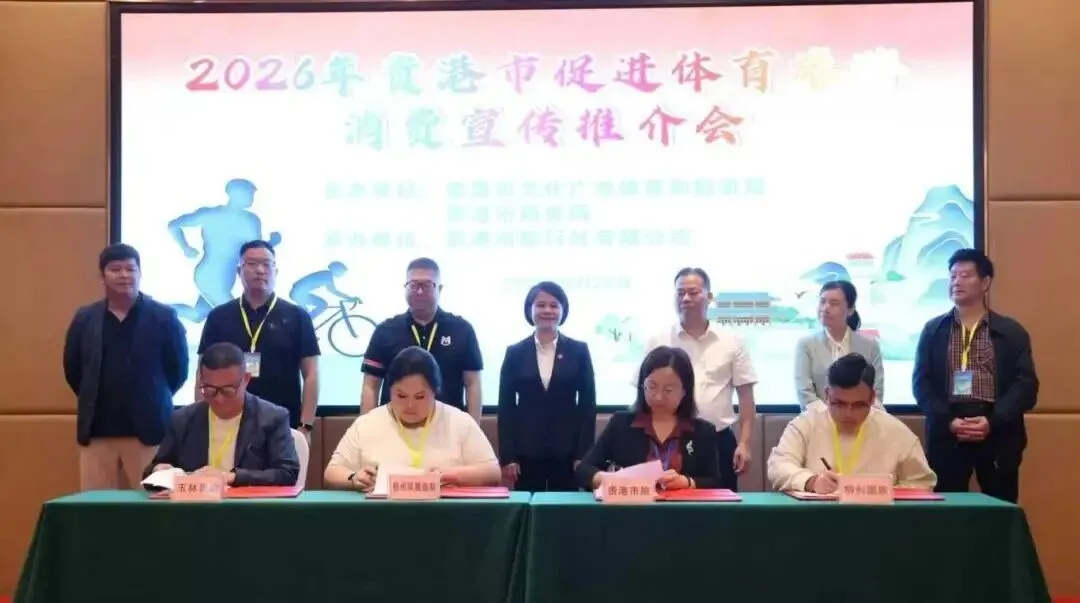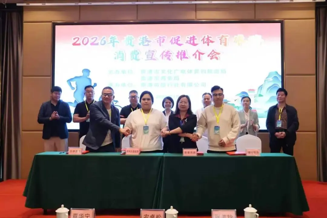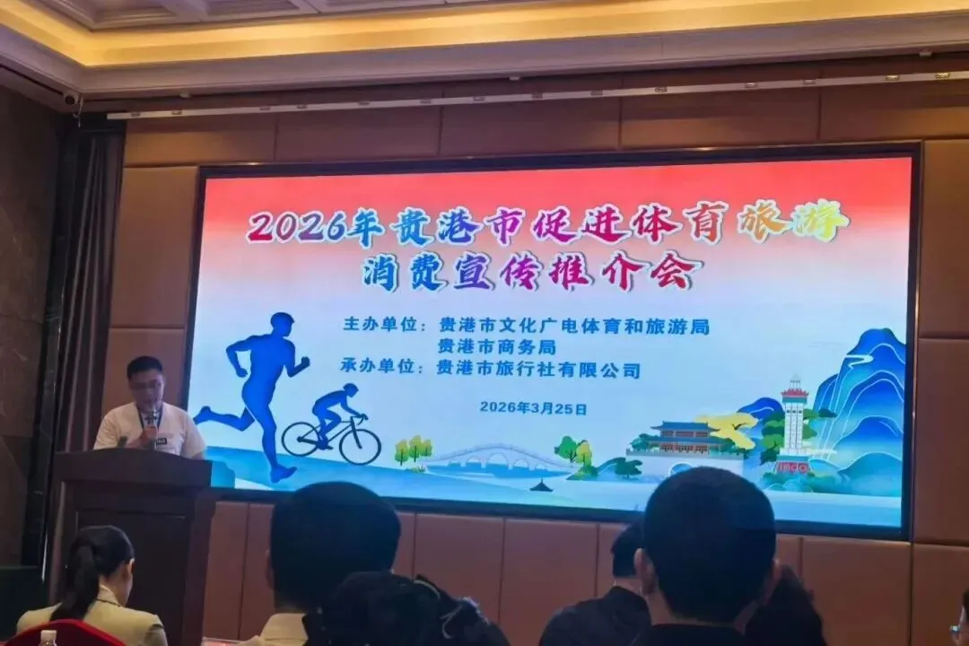 3月25日,2026年贵港市促进体育旅游消费宣传推介会在市区顺利举行。本次活动由贵港市文化广电体育和旅游局、贵港市商务局联合主办,贵港市旅行社有限公司承办。来自粤港澳大湾区及区内外高铁、航空通达城市的优质旅行社代表,与本地文旅、餐饮等企业代表齐聚一堂,共商合作、共话机遇,共谋贵港体育旅游发展新篇章。副市长农卓松出席活动并作现场推介。