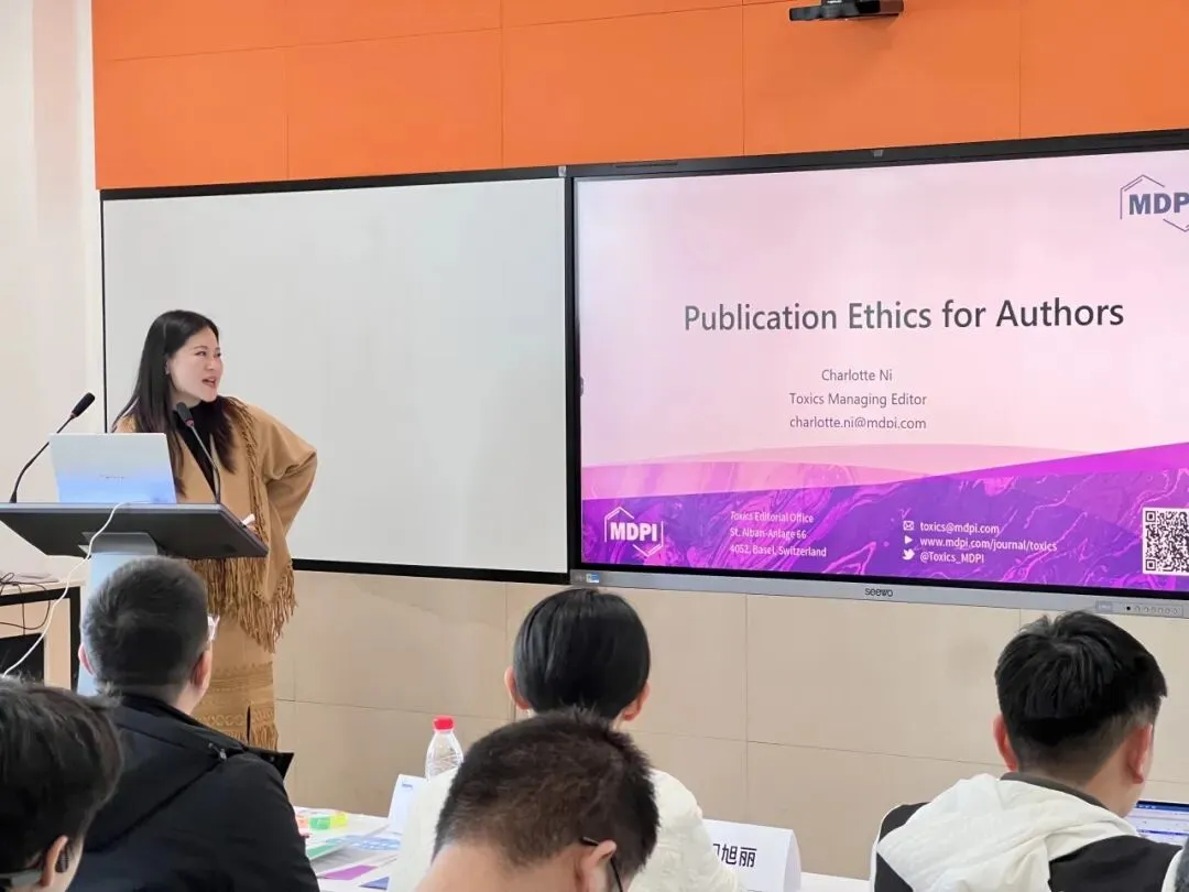 Toxics期刊责任编辑倪思嘉围绕“出版伦理道德解读”进行专题讲解。她结合MDPI严格的出版伦理规范,重点解读了学术不端的常见类型、鉴别方法及应对措施,强调了诚信投稿、规范署名、数据真实的重要性,引导师生坚守学术底线,树立正确的出版伦理观,为学术研究保驾护航。