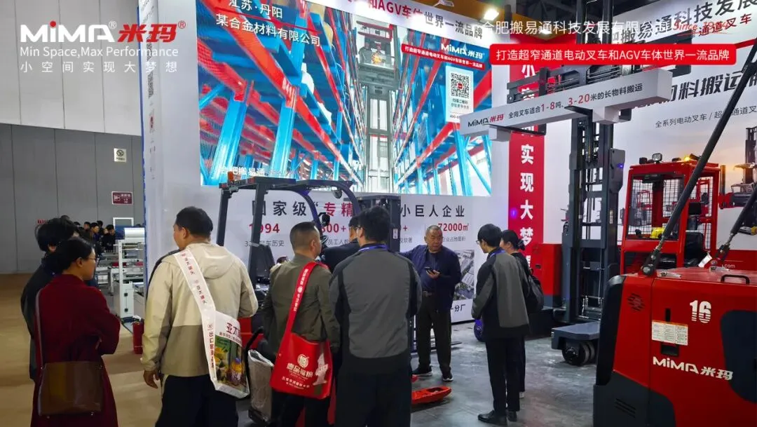 合肥搬易通(MiMA米玛)参展产品在高位密集仓储、长物料灵活搬运、以及AGV无人化适配等方面的核心优势,直击食品行业在仓储物流环节的空间与效率痛点,现场咨询洽谈气氛热烈,获得了现场客户的高度关注与认可。