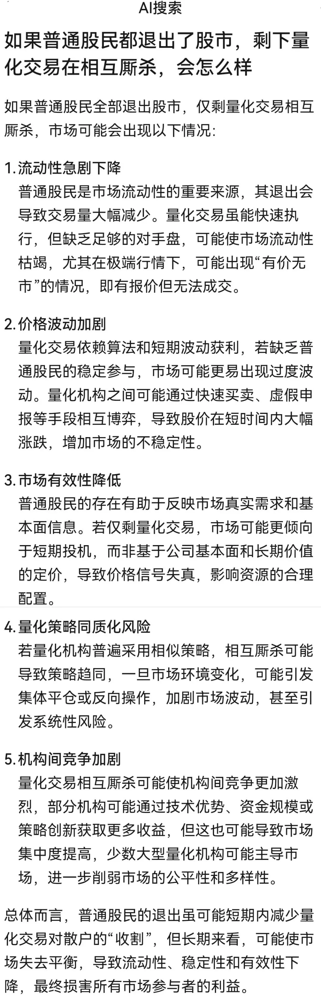 如果普通股民都退出股市,剩下量化交易相互厮杀,会怎么样?