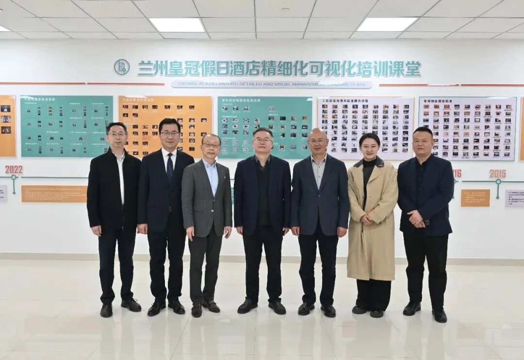 座谈会后,郭利群一行参观了兰州皇冠假日酒店精细化可视化培训课堂,深入了解了酒店可视化标准化工作法、365天可视化工作法、资产精细化管理法三大创新管理举措,交流布草芯智能化管控等“双绿”酒店实践经验。郭利群对兰州皇冠假日酒店秉持极致管理要求、追求卓越服务品质所取得的成效给予高度评价,认为其标准化、可视化、精细化的管理模式具有很高的学习价值和借鉴意义,为中国对外文化集团、中演院线进一步提升自身管理水平提供了强有力的参考。