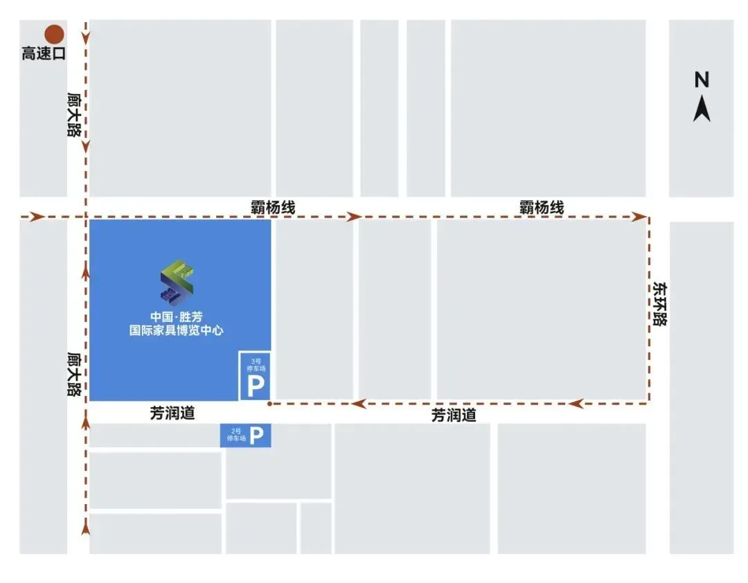 自驾导航请搜索「胜芳国际家具博览中心」,车辆可停泊在2号停车场、3号停车场。(温馨提示:4月7日-10日,芳润道博览中心路段实施交通管控,禁止任何机动车、非机动车通行。)