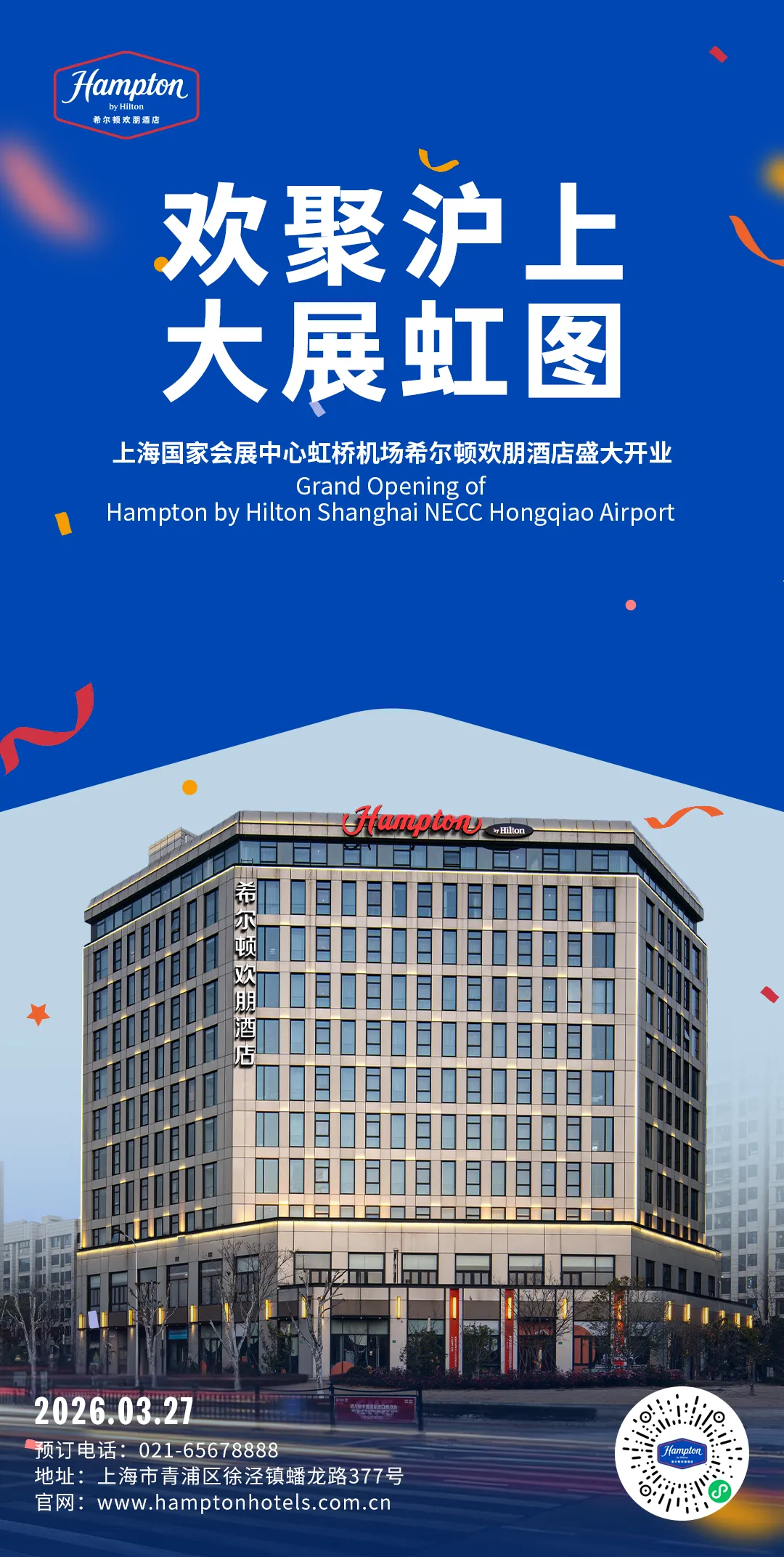 上海国家会展中心虹桥机场希尔顿欢朋酒店坐落于上海市青浦区徐泾镇蟠龙路377号,是希尔顿旗下备受青睐的中高端酒店品牌成员。依托希尔顿欢朋全球高品质标准,这里为每一位到访的宾客提供着温馨舒适的入住体验,无论是商务出行还是休闲旅游,都是不错的下榻之选。