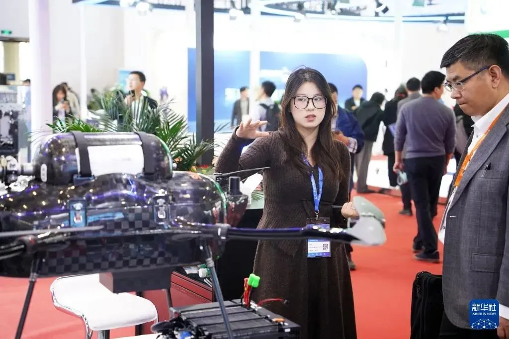 3月26日,工作人员向参观者介绍展品。新华社记者 潘旭 摄