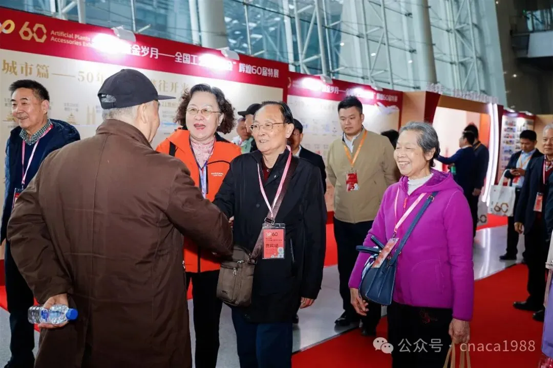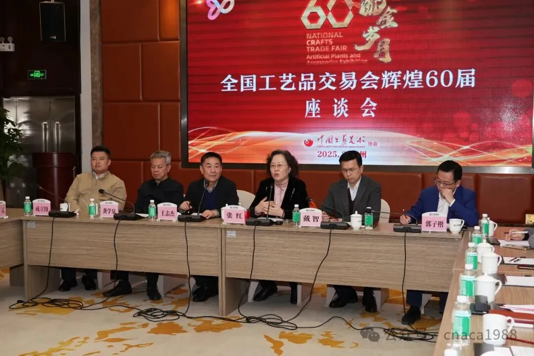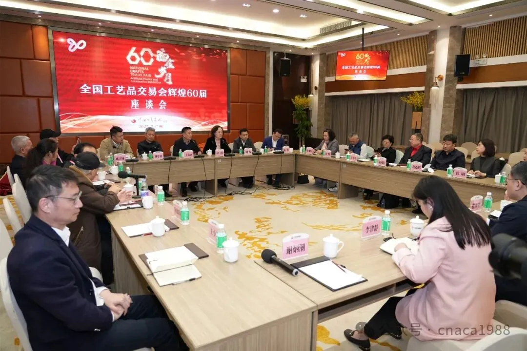座谈会当日上午,与会嘉宾们还集体参观了第60届仿真植物及配套用品展,以及“流金岁月——全国工艺品交易会辉煌60届特展”。