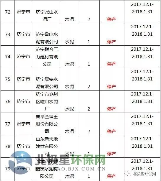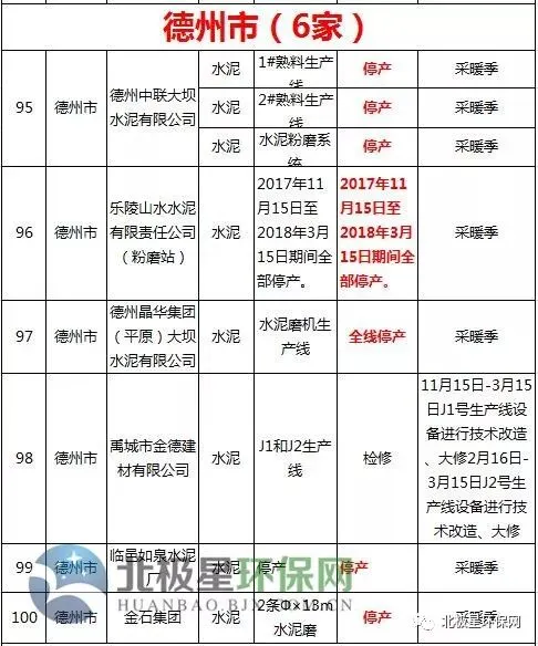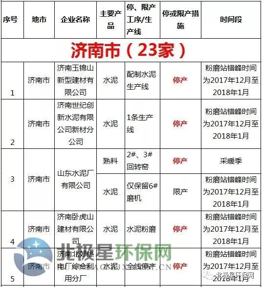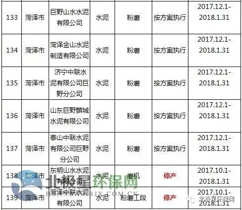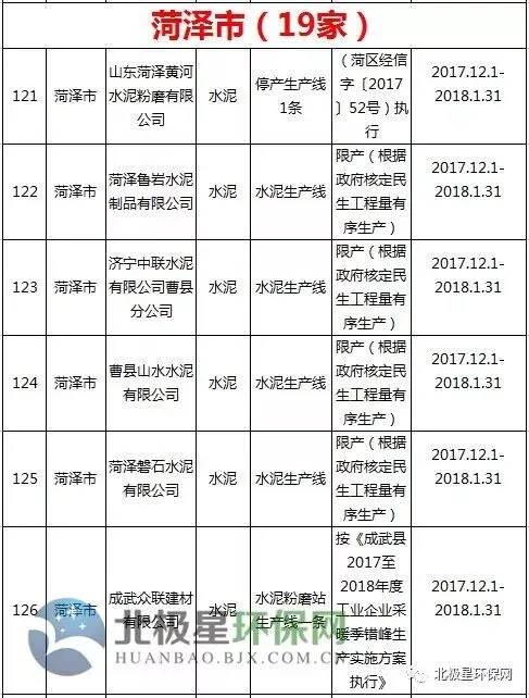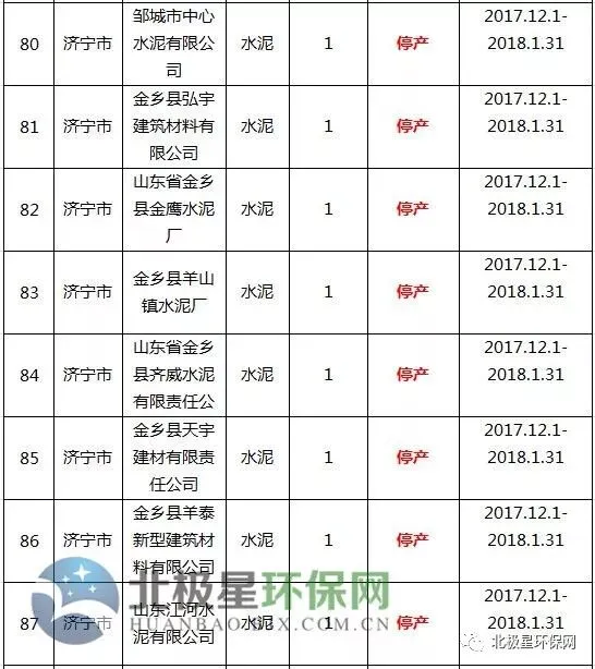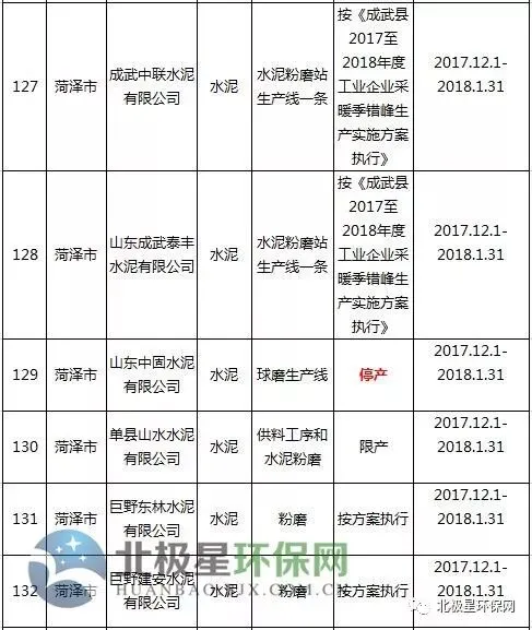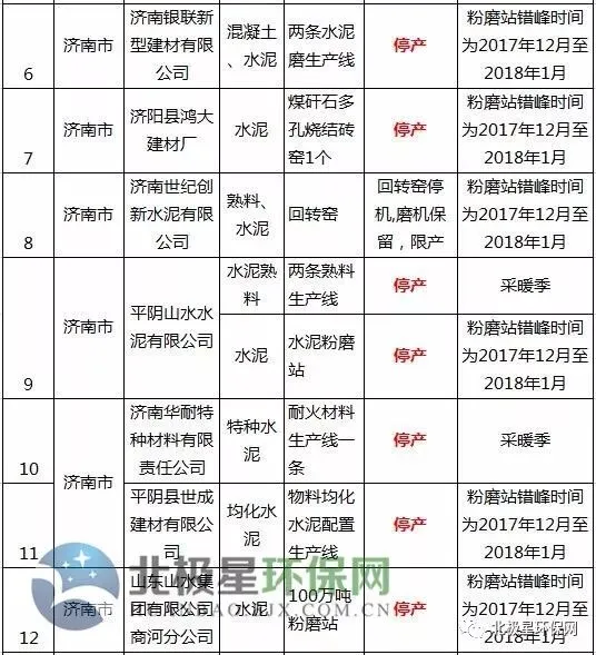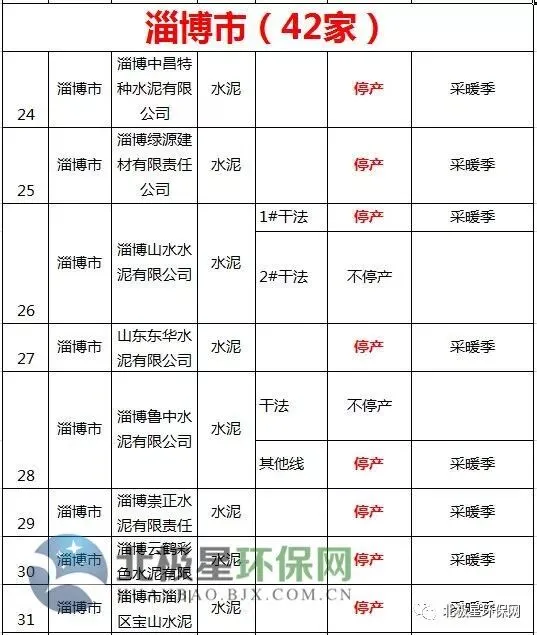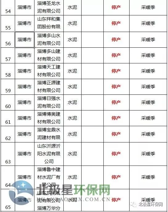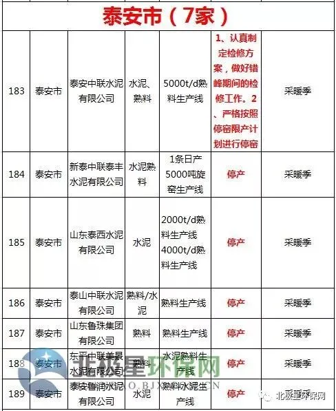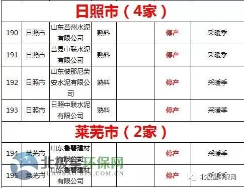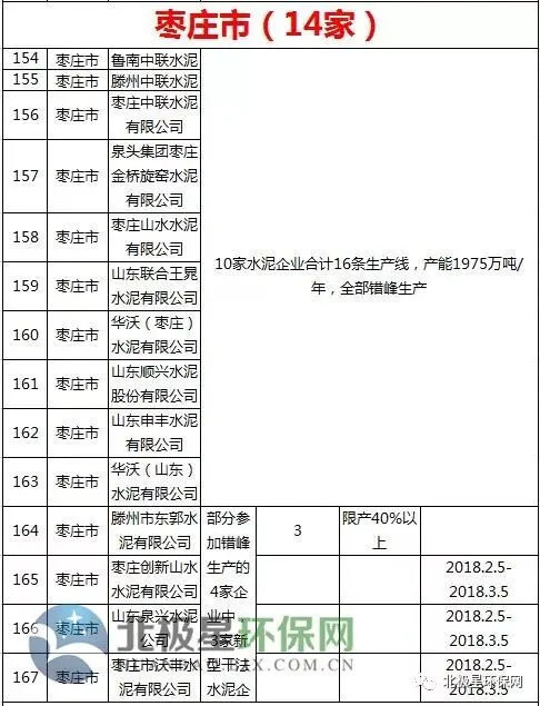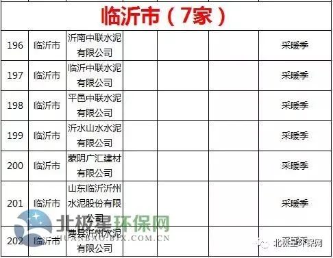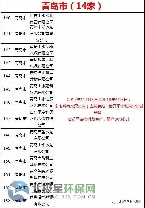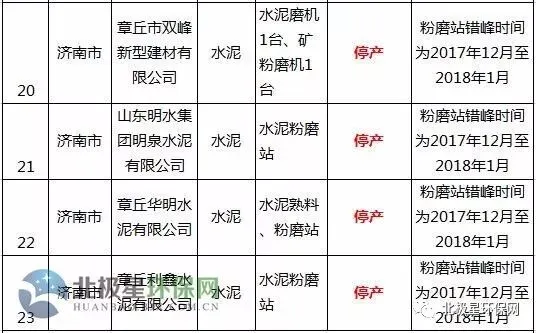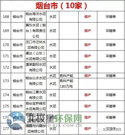 水泥错峰生产企业名单