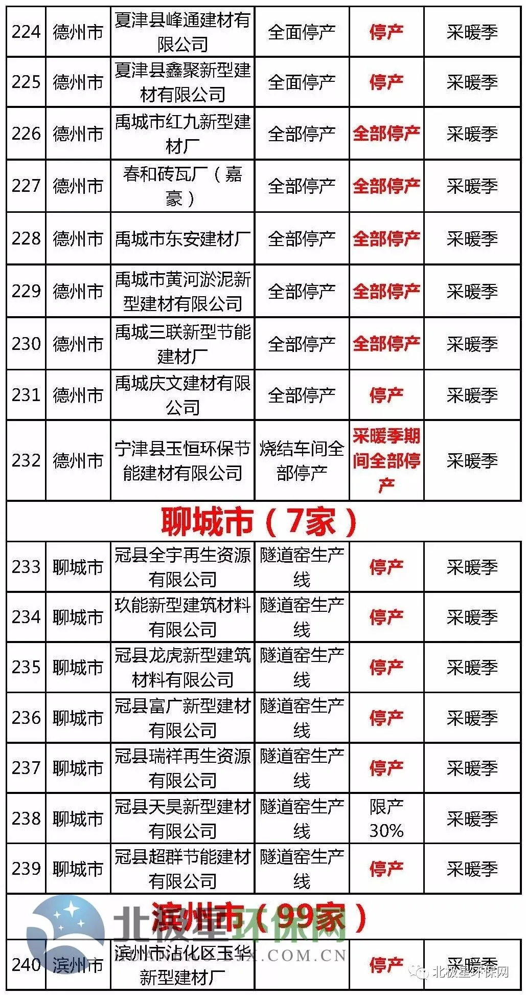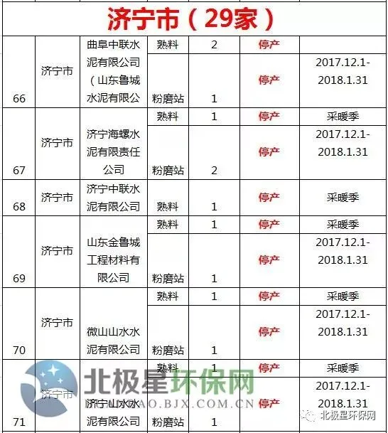 3. 水泥行业错峰名单中对于7个通道城市(济南、淄博、济宁、德州、聊城、滨州、菏泽)包含粉磨站。
