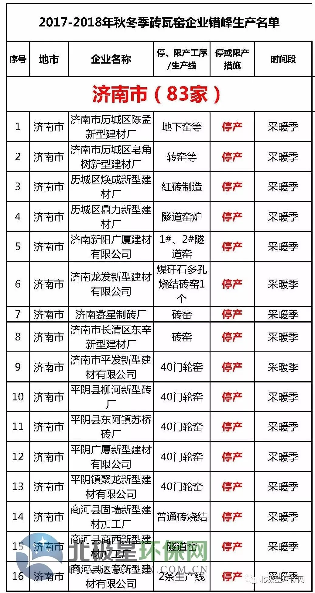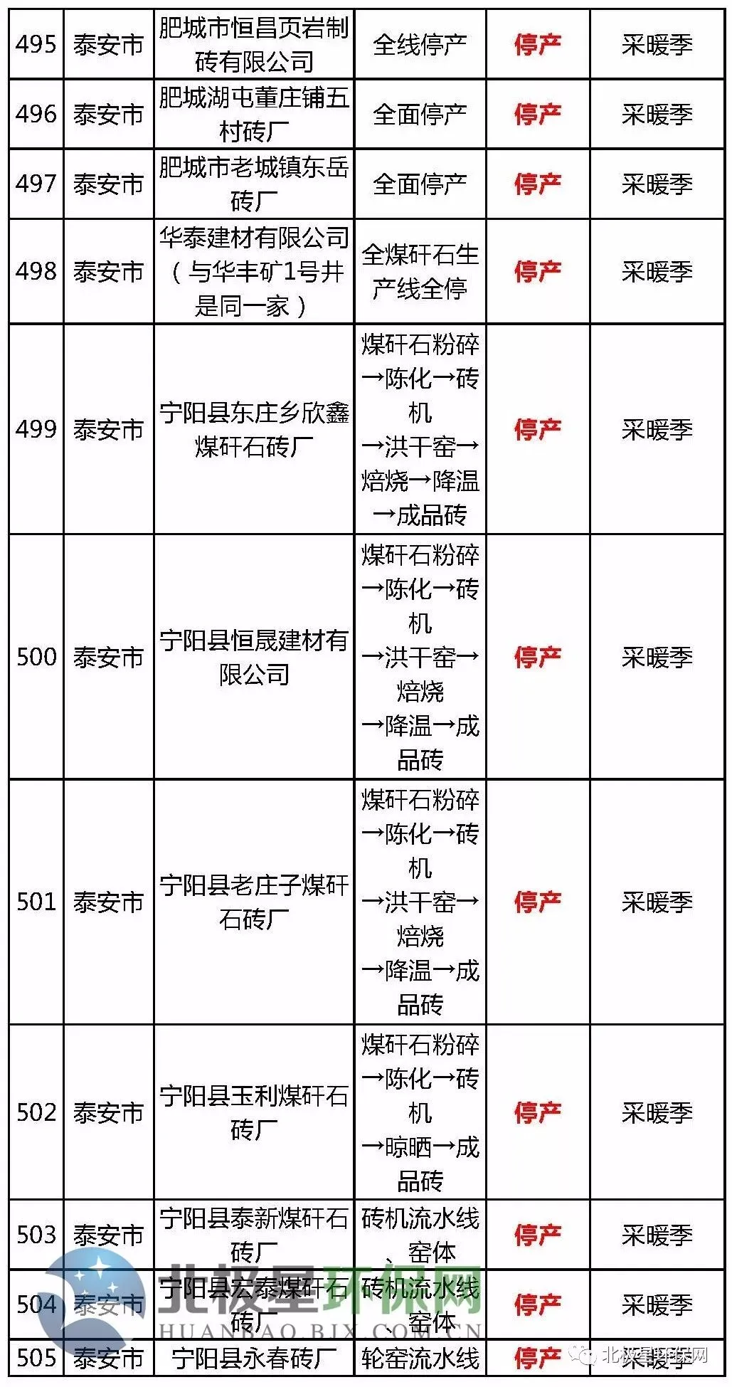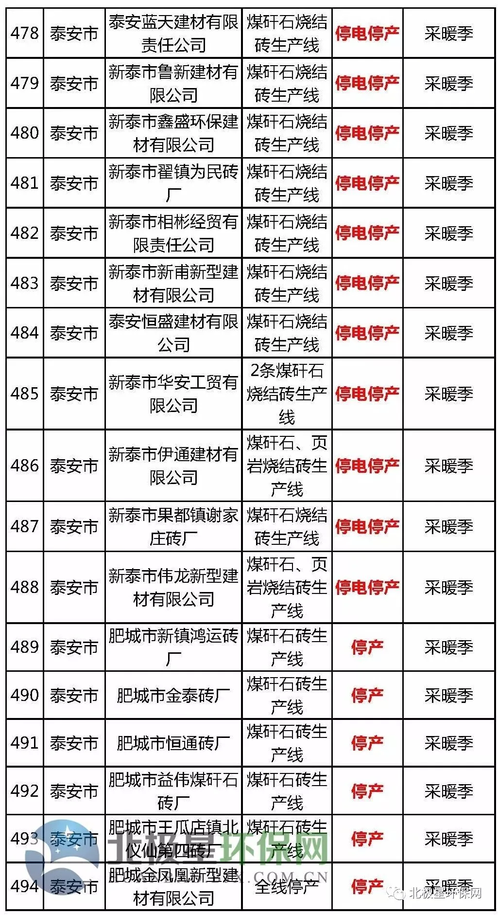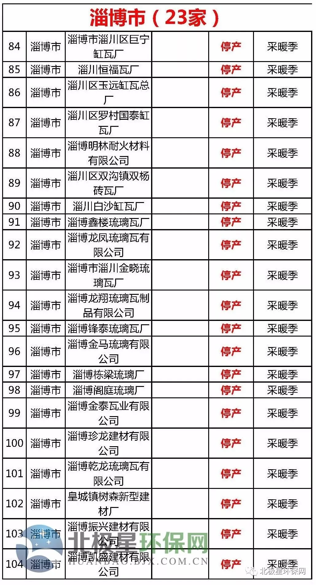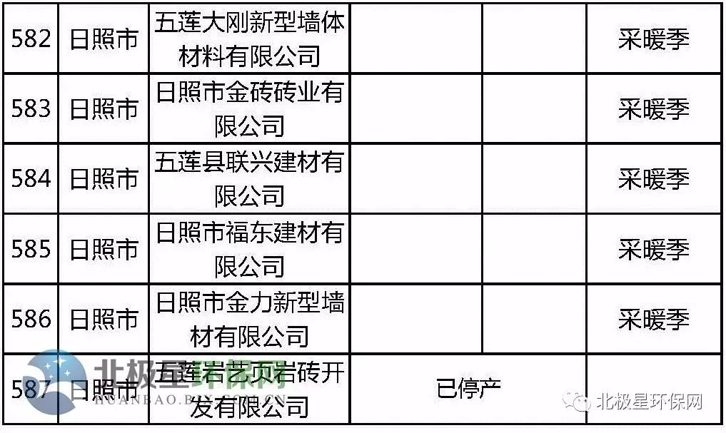 砖瓦窑错峰生产企业名单