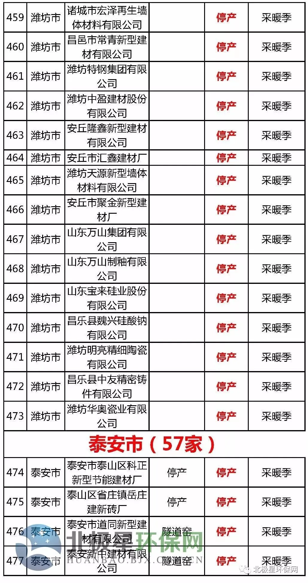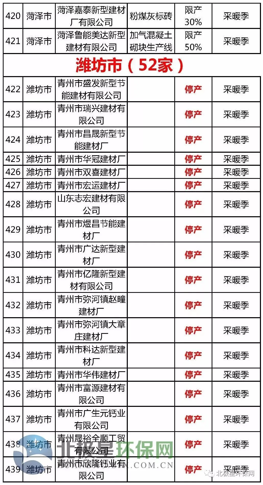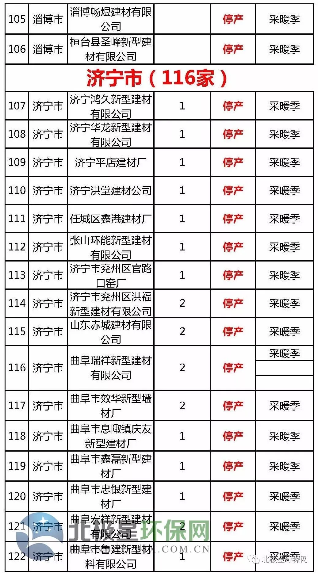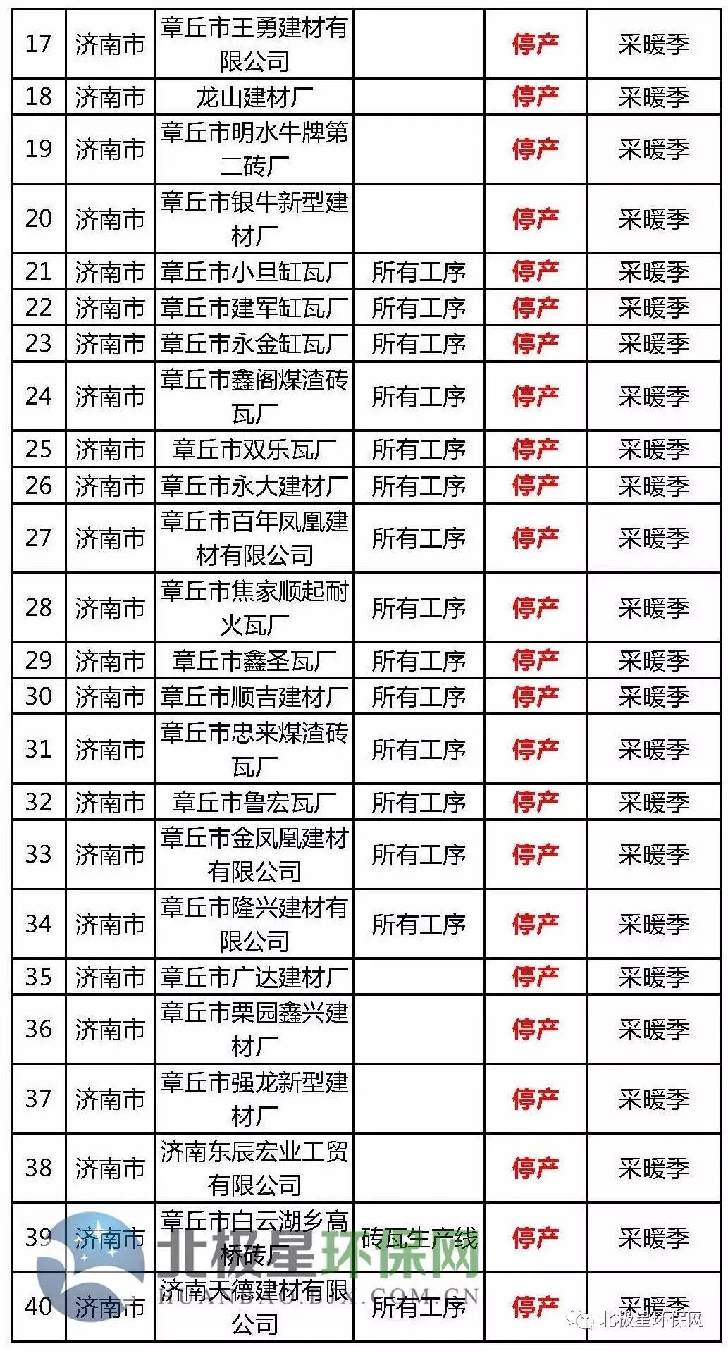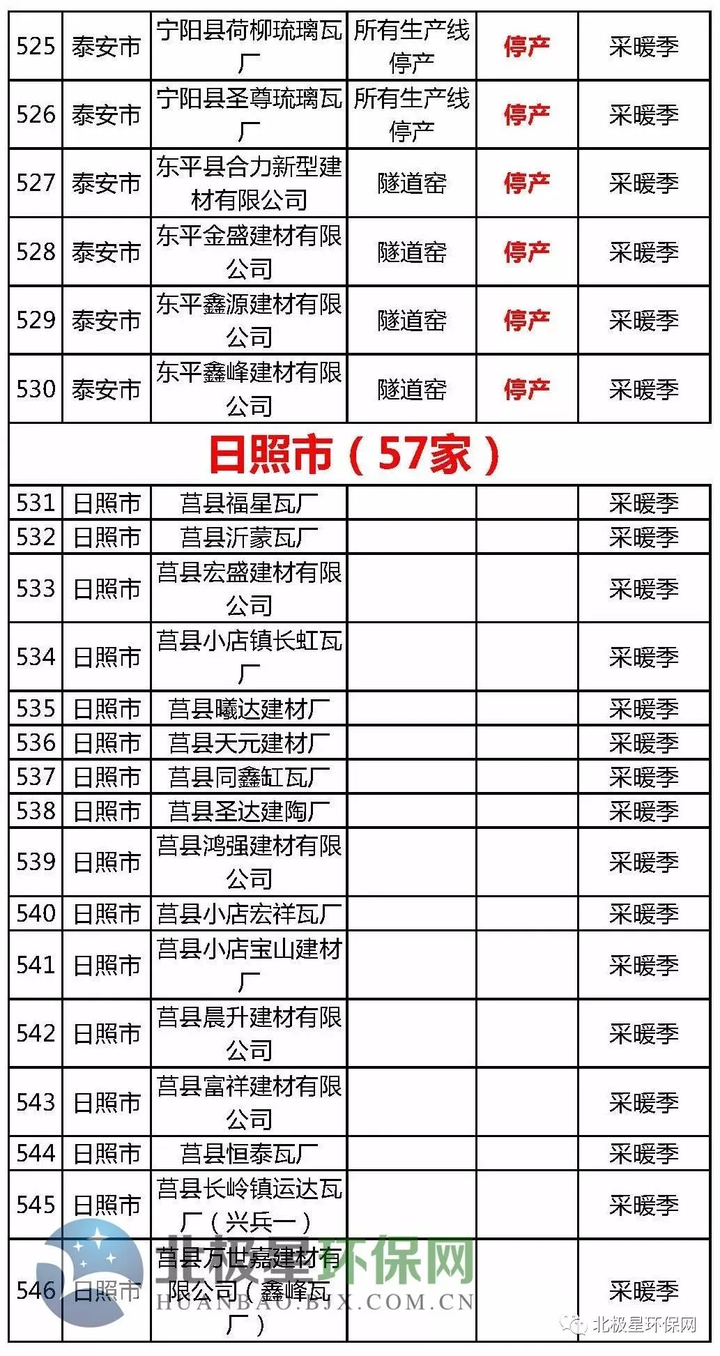 砖瓦窑错峰生产企业名单
