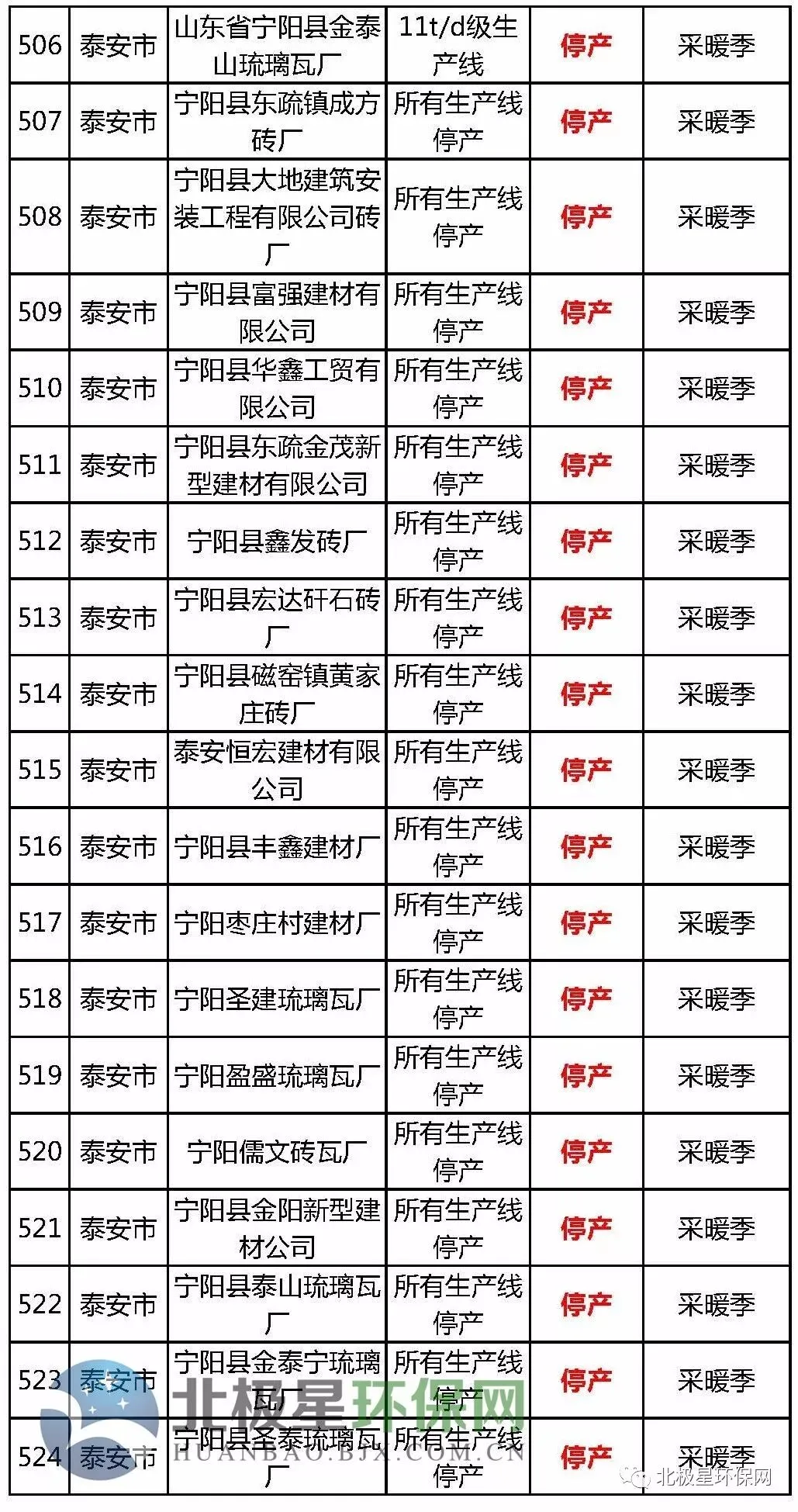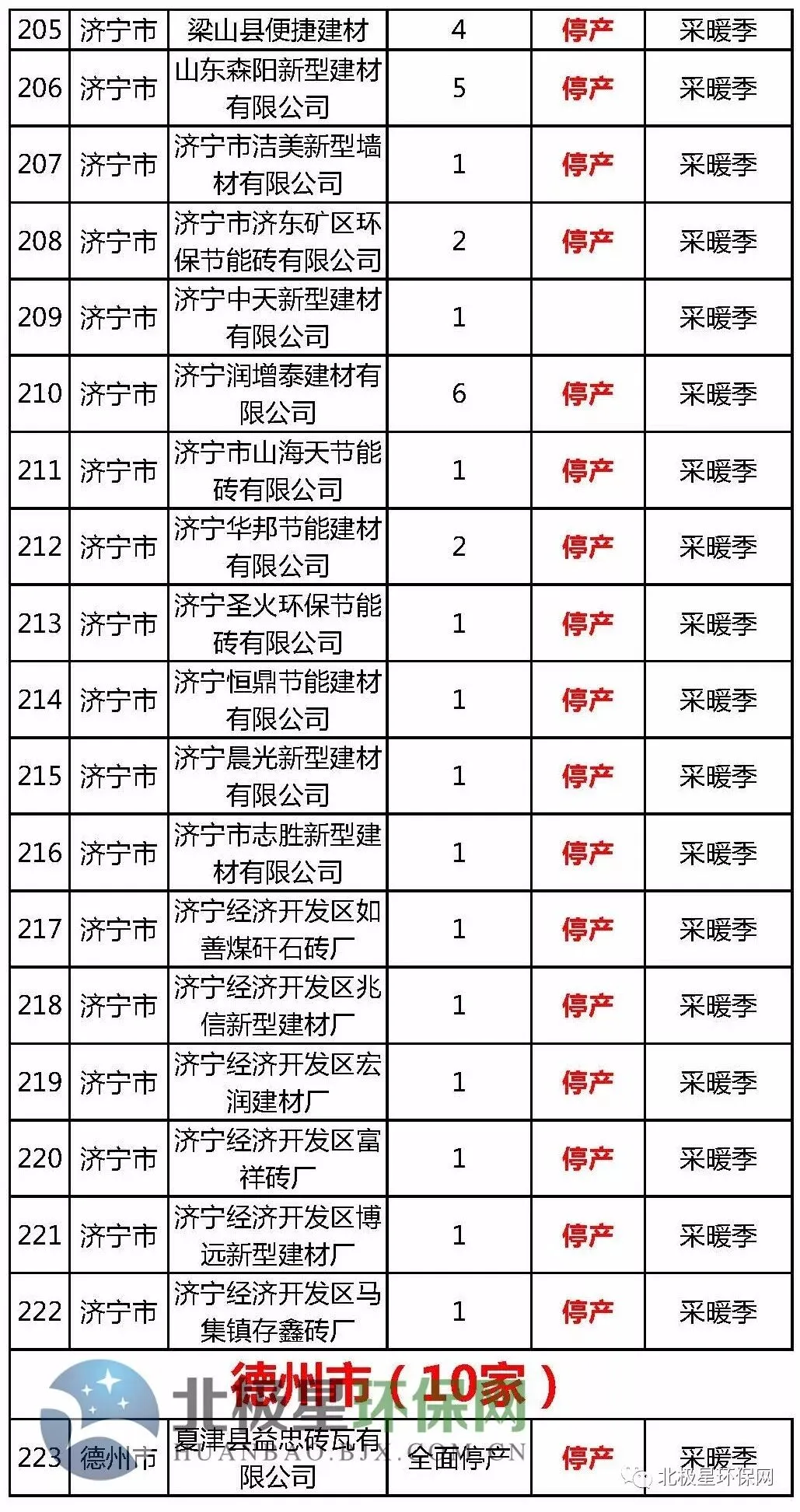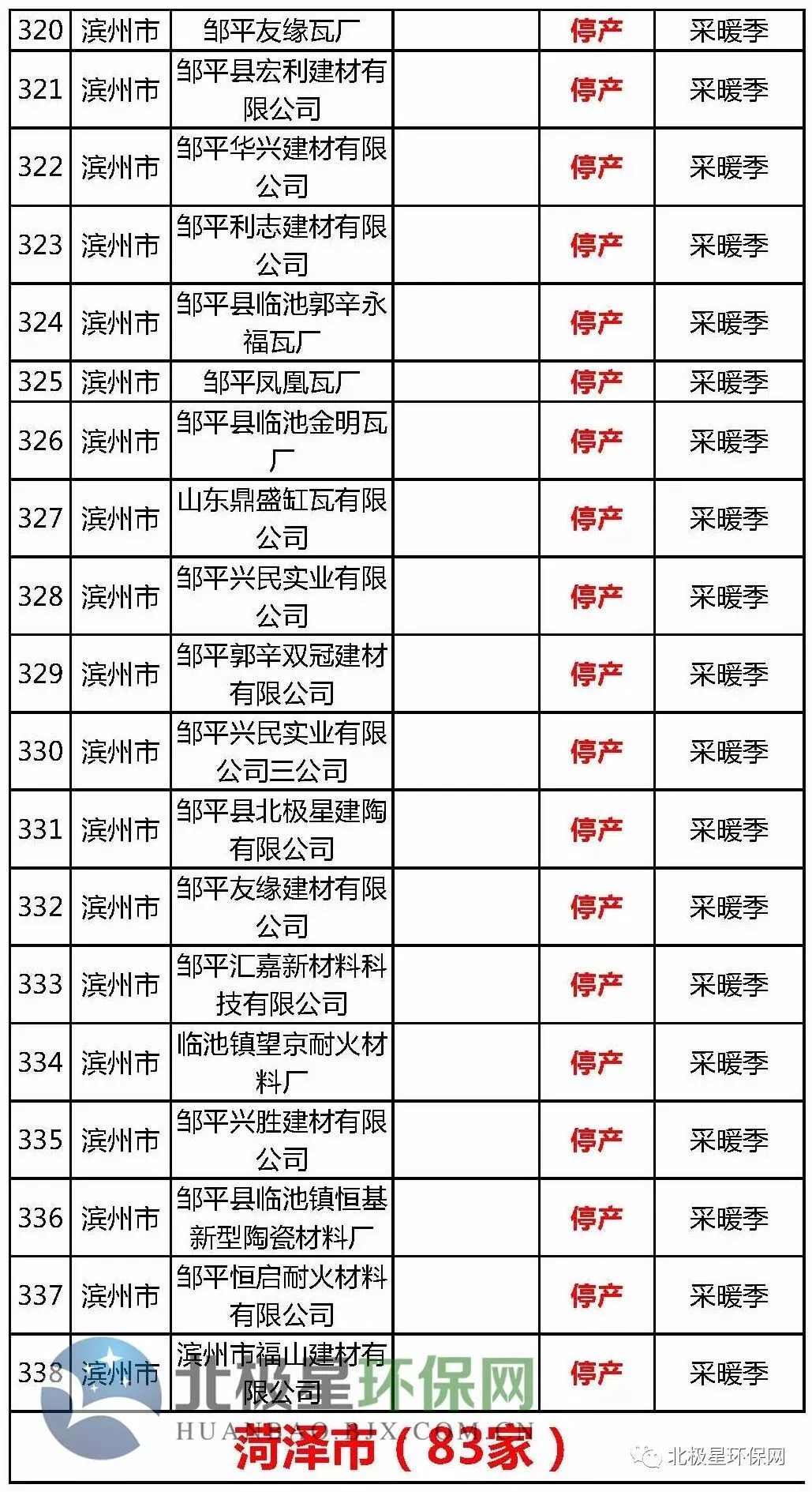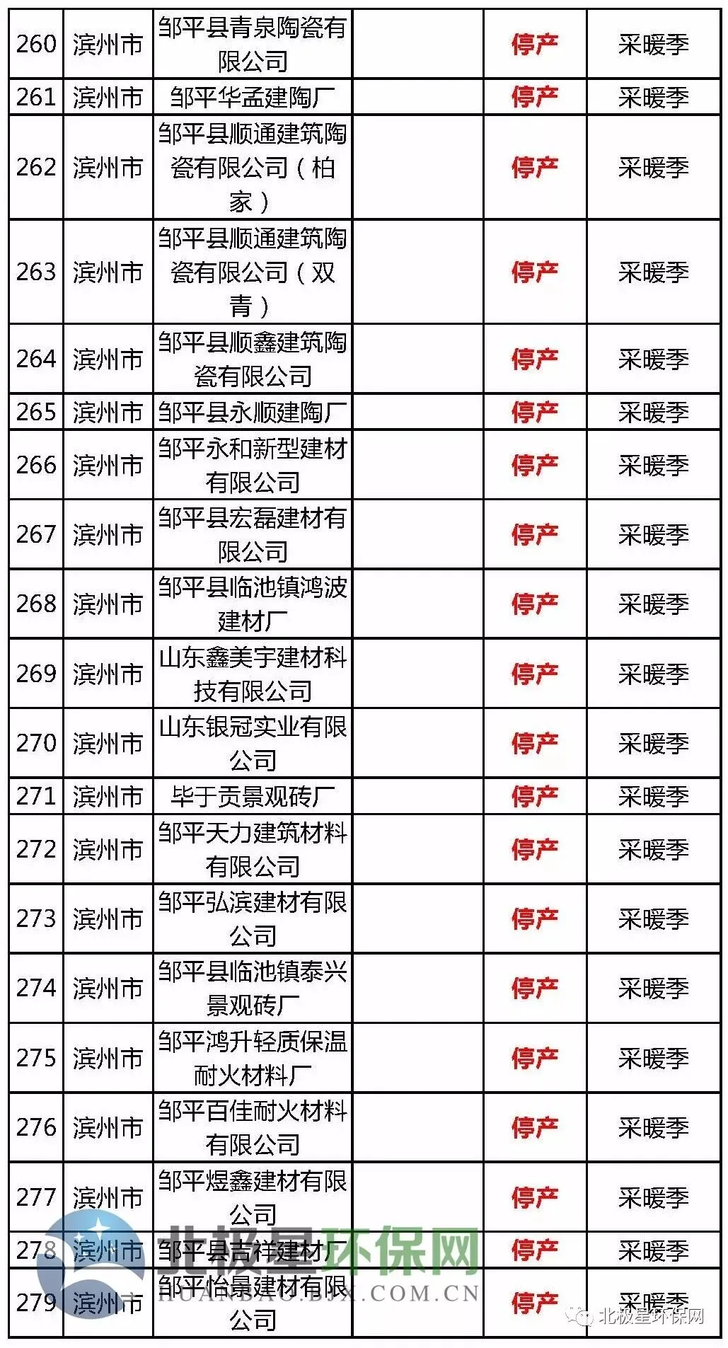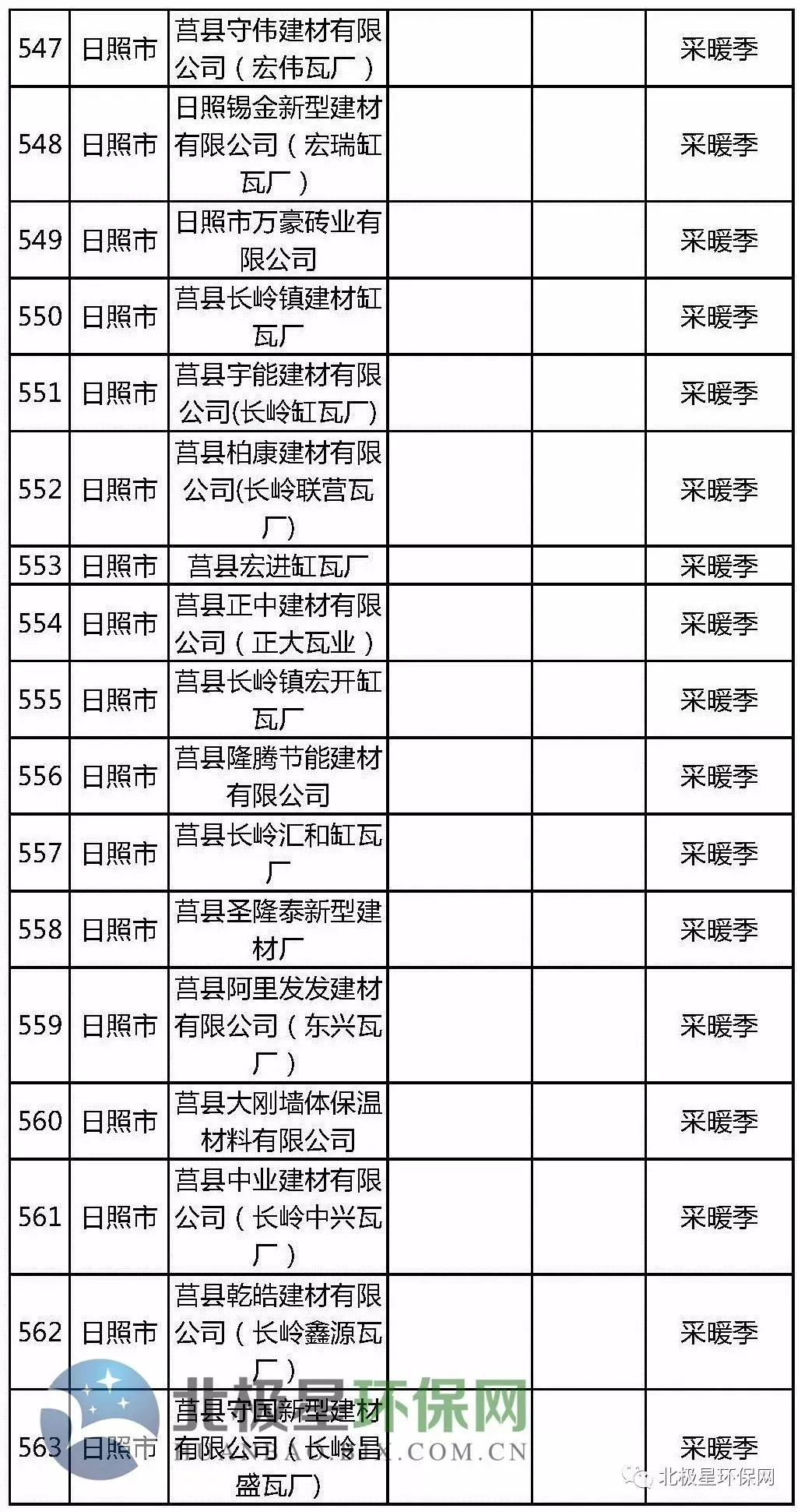 砖瓦窑错峰生产企业名单