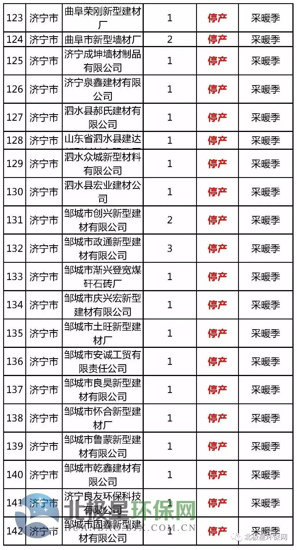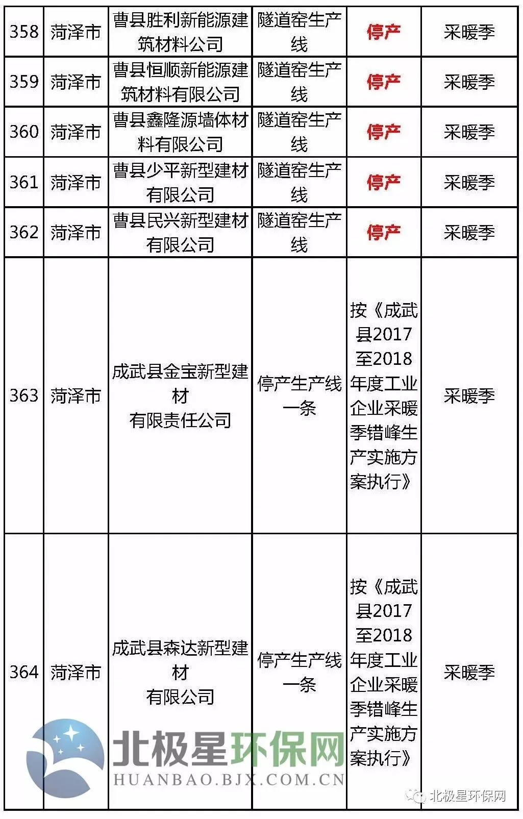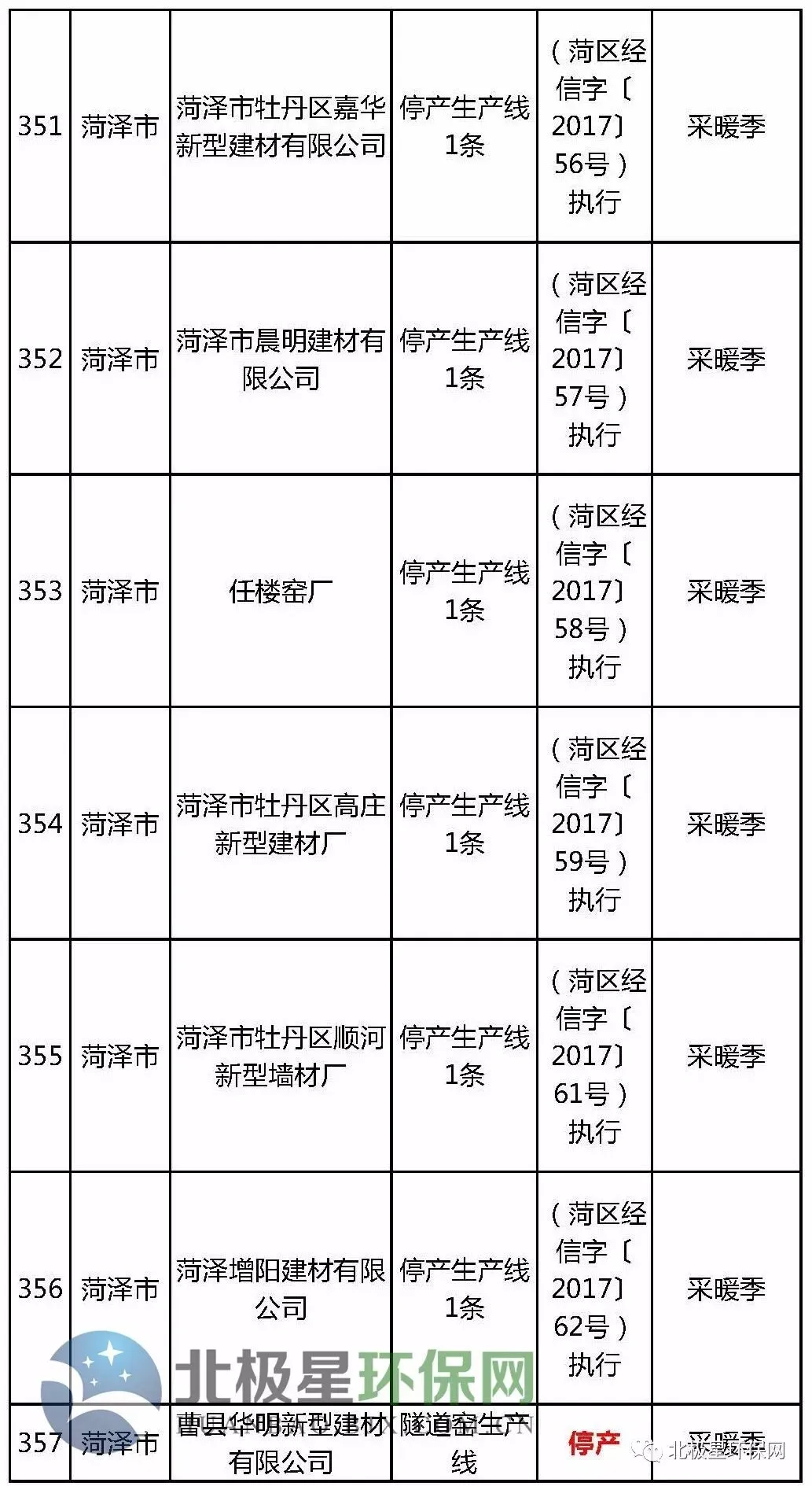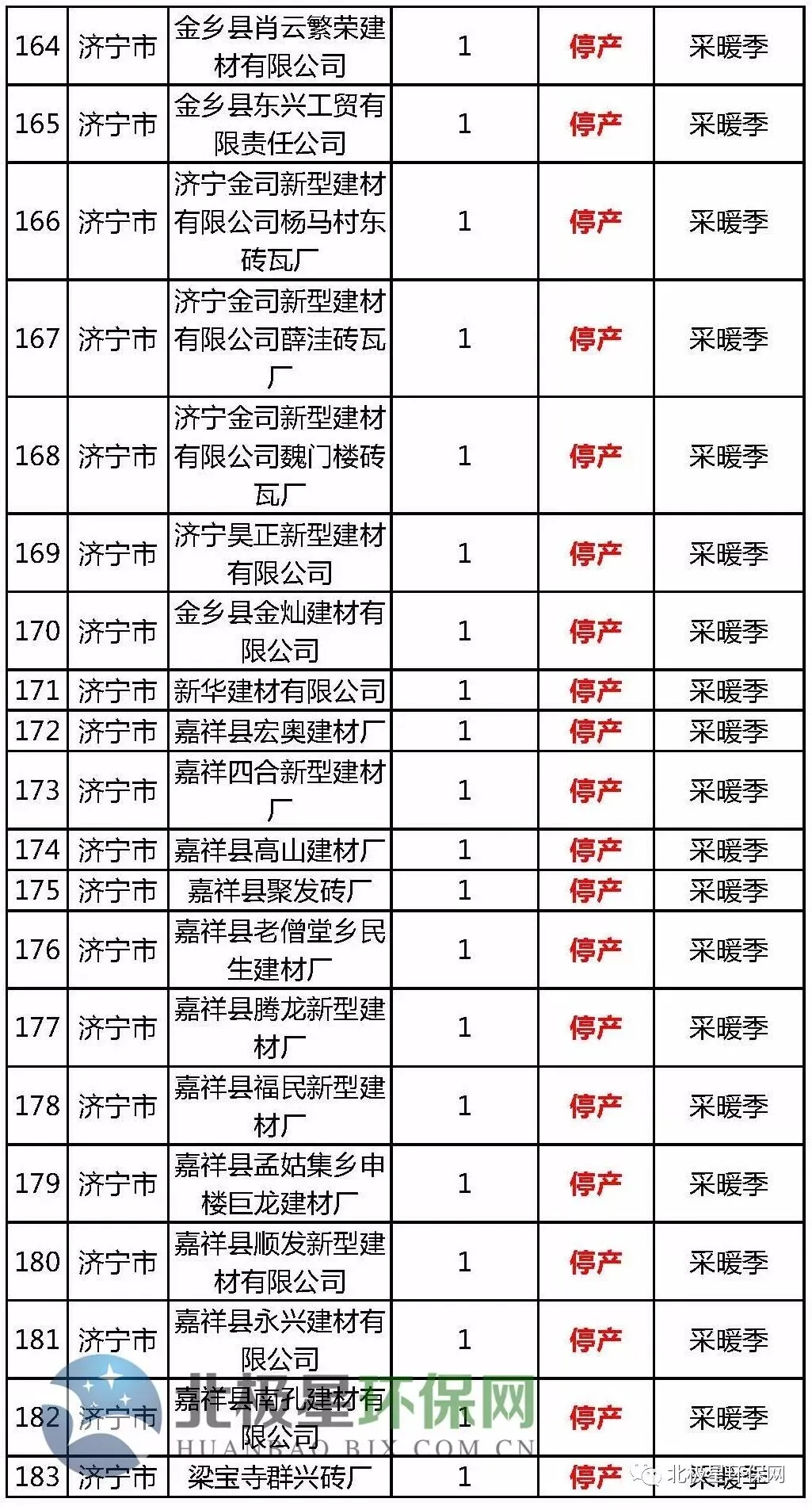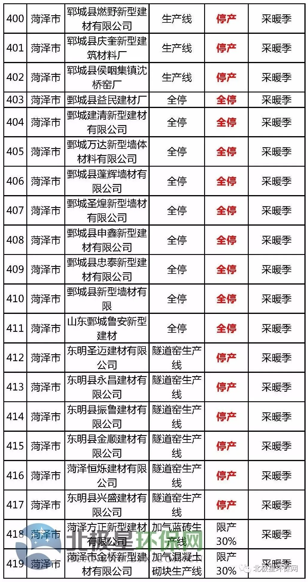 砖瓦窑错峰生产企业名单