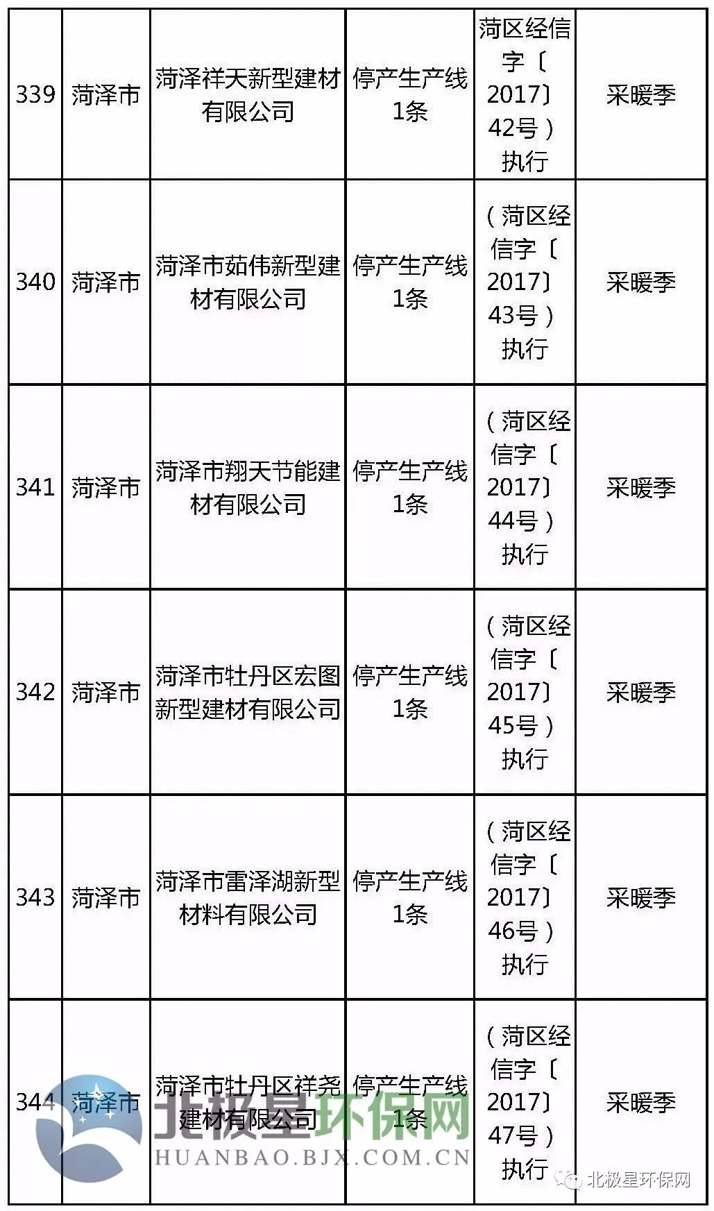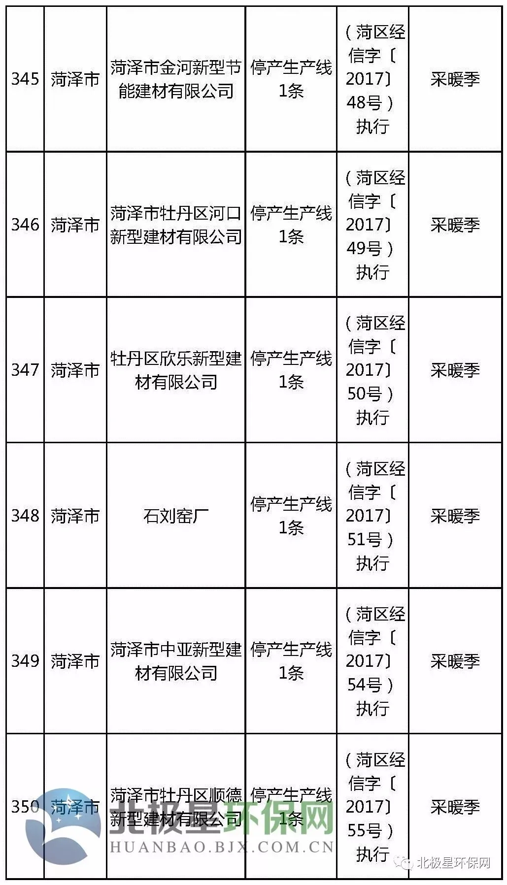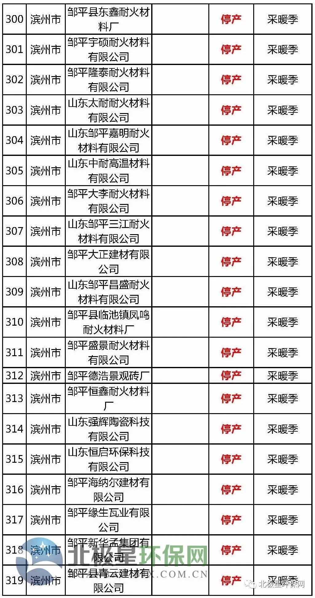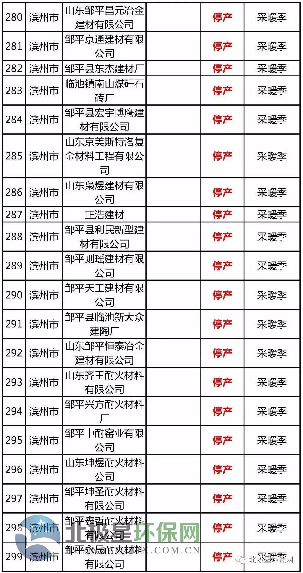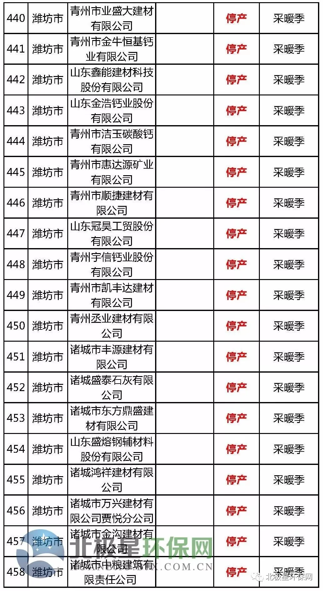 砖瓦窑错峰生产企业名单