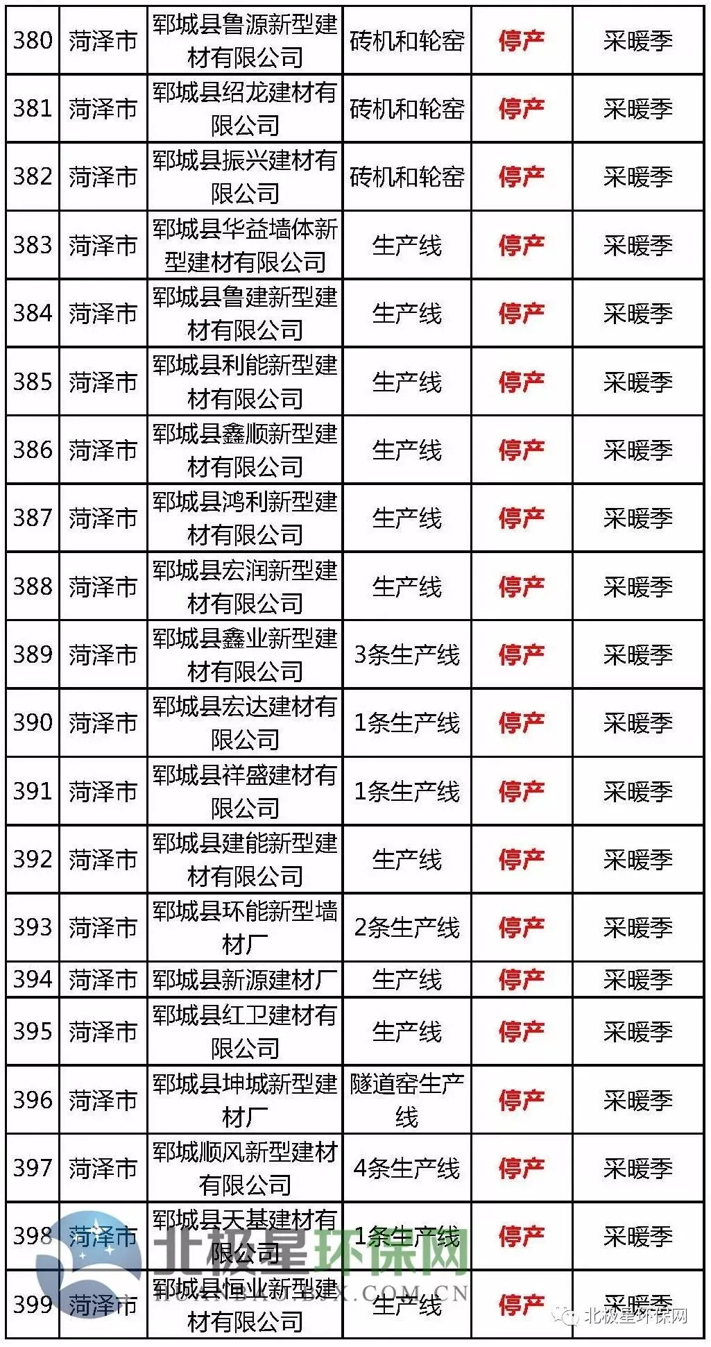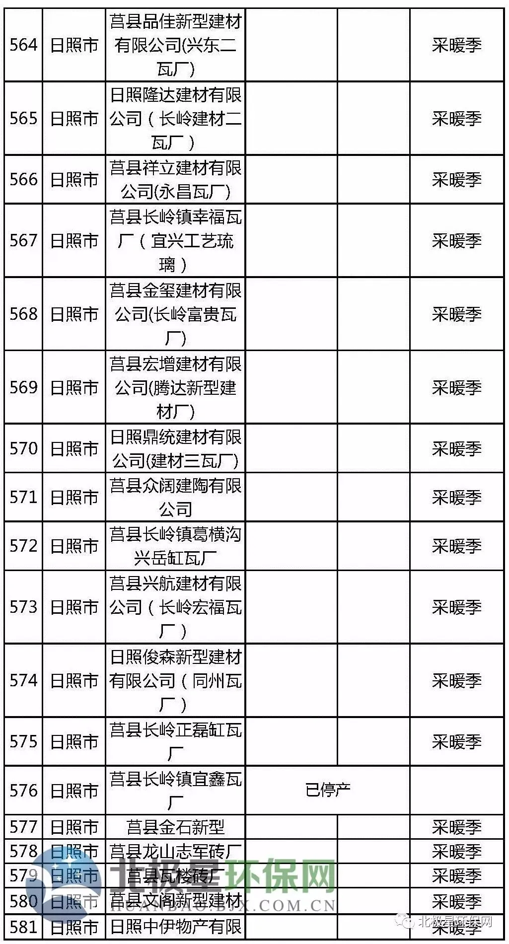2、砖瓦窑错峰生产企业名单