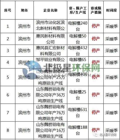 电解铝错峰生产企业名单