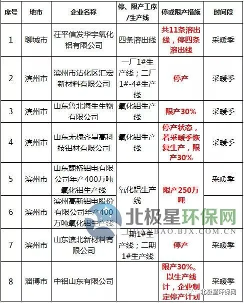 氧化铝错峰生产企业名单
