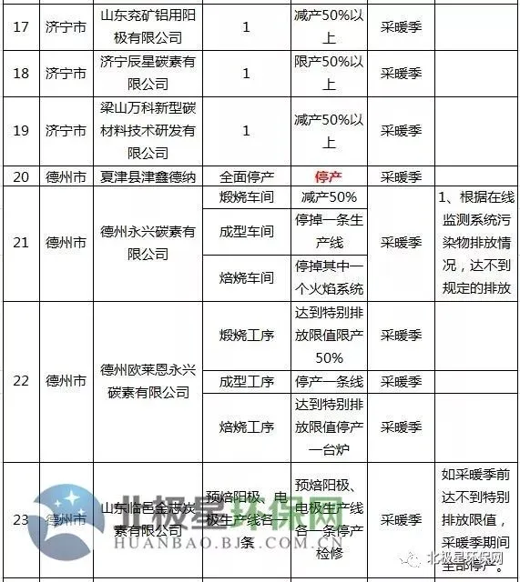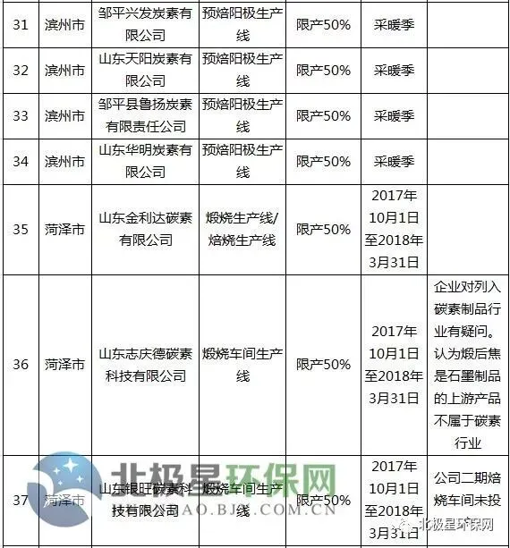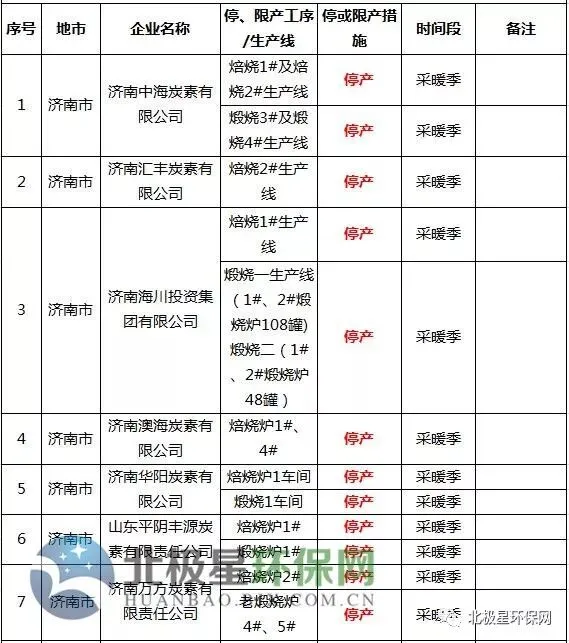 炭素错峰生产企业名单
