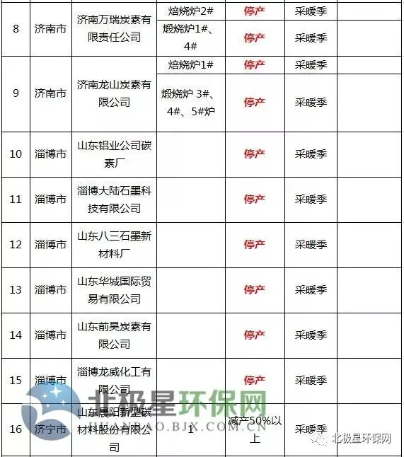 9、炭素错峰生产企业名单