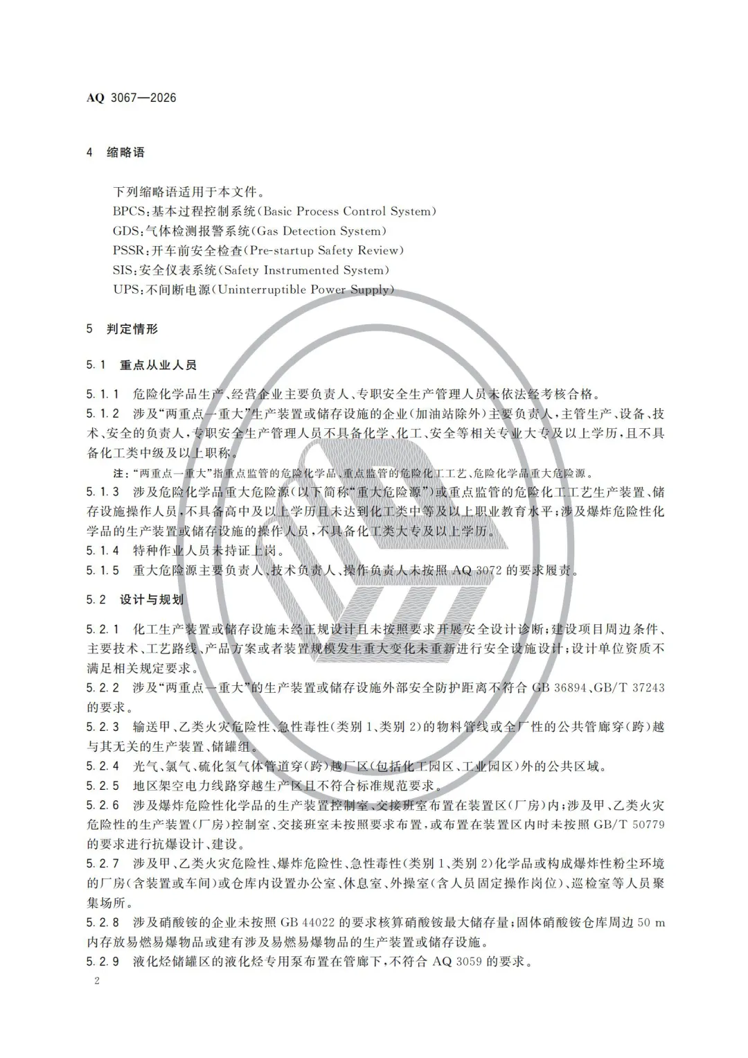 《化工和危险化学品生产经营企业重大生产安全事故隐患判定准则》(AQ 3067—2026)全文↓↓↓