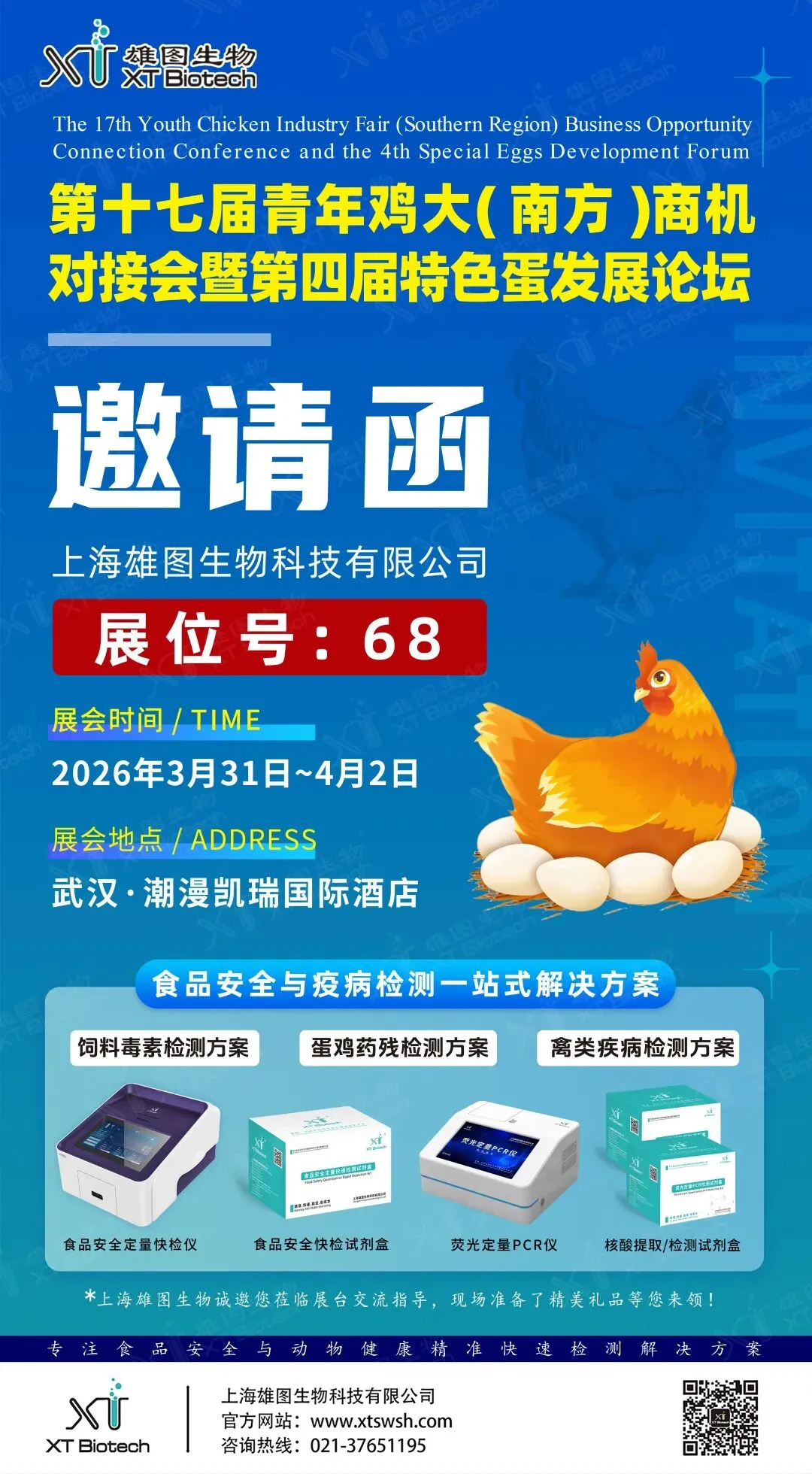 您好!首先感谢您一如既往对上海雄图的关注和支持。“第十七届青年鸡大会暨第四届特色蛋发展论坛”将于2026年3月31~4月2日在湖北武汉隆重召开。我们诚挚邀请您与上海雄图共探产业新机遇。