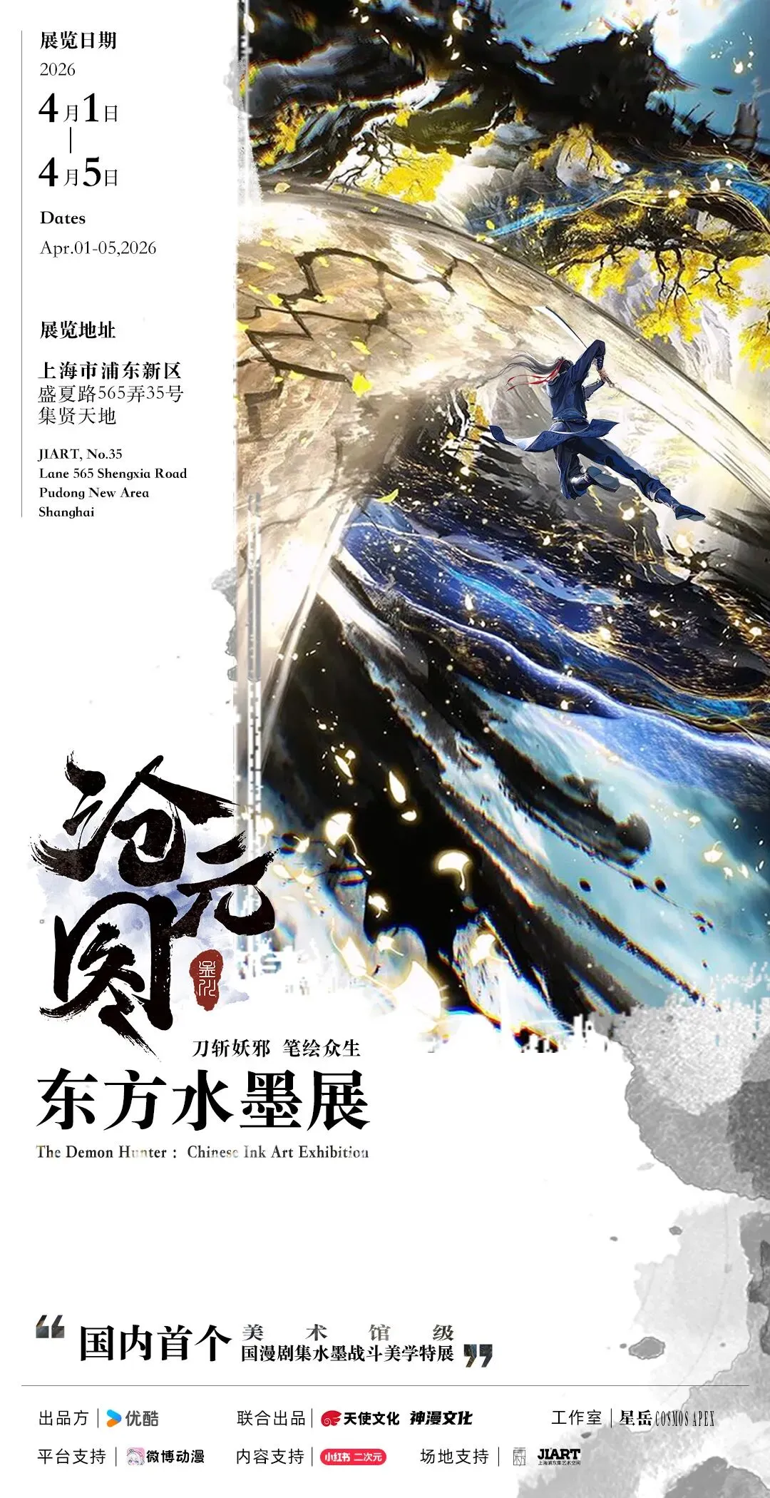 国内首个美术馆级·国漫剧集水墨战斗美学特展落地上海!百卷水墨原画,构筑沧元天地。经典名句挥毫,定格热血瞬间。购票可得限定神秘周边!打破观影边界,让热血在展览中燃动!
