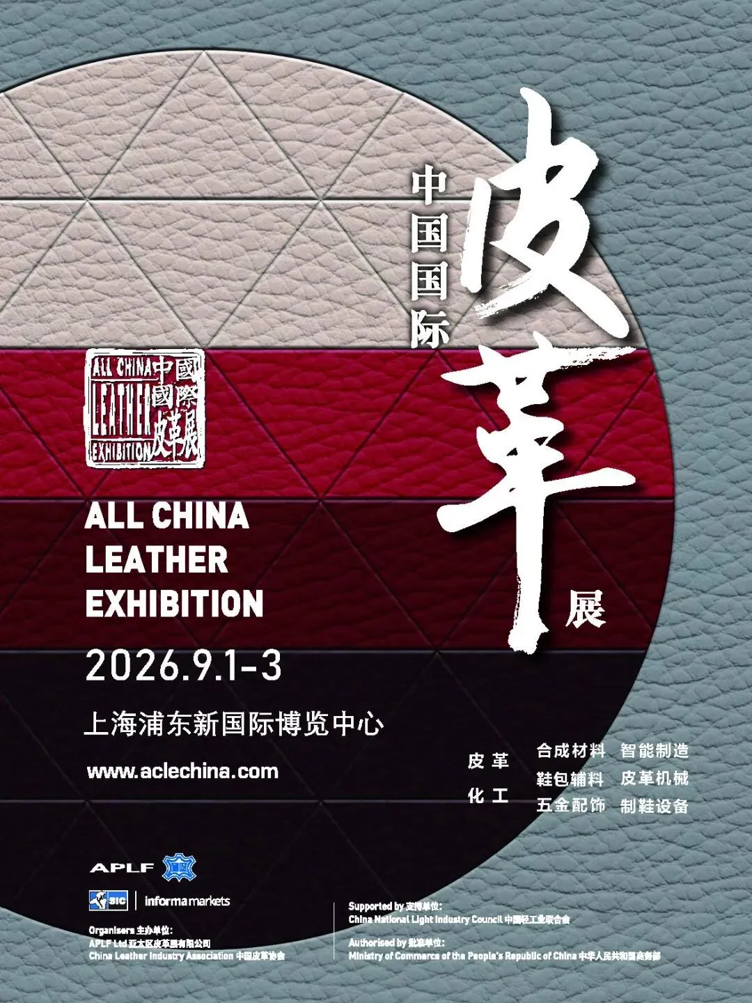 近年来,全球政治和经济不稳定性给中国鞋靴、箱包皮具和毛皮服装服饰等产业带来了巨大冲击和挑战。但变局蕴含机遇,挑战激发斗志。在此背景下,中国皮革协会全面贯彻落实党的二十大和二十届历次全会精神,按照《中华人民共和国国民经济和社会发展第十五个五年规划纲要》提出的“扩大轻工、纺织等优质产品供给”“强化品牌引领”“推动贸易创新发展”“做强国内大循环,畅通国内国际双循环”等要求,继续以品牌引领和商贸对接为抓手,将于2026年9月1日至3日在上海新国际博览中心盛大举办2026国际鞋包服饰时尚展览会(以下简称2026时尚展),推动产业不断转型升级,促进行业高质量发展。