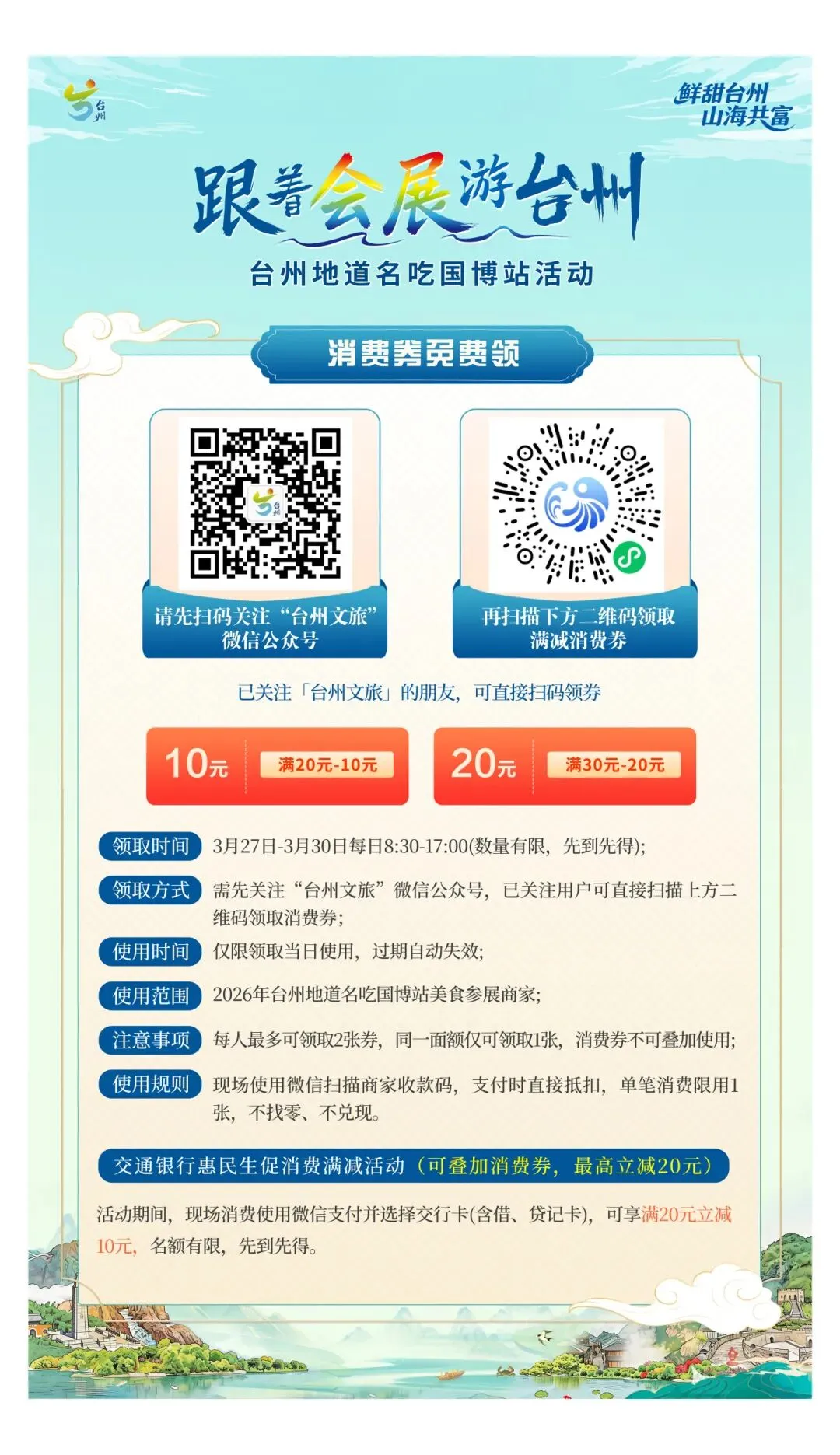 这里既有麻糍、麦饼、梅花糕、泡虾、海苔饼、蛋清羊尾、糟羹等街头巷尾的经典小吃,又有飞龙山庄、台州远洲凤凰山庄、渔小海、食补堂桃栖餐厅、满仓渔家、亮小鲜等知名酒店的匠心美味。烟火升腾间,为盛会增添一抹“台州味道”。