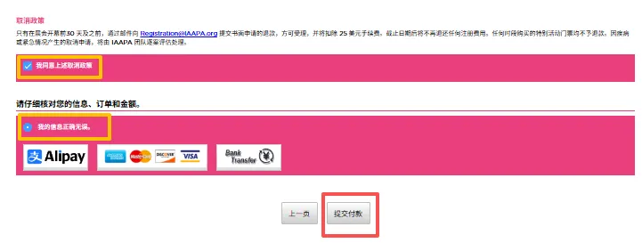 完成登记并确认信息无误后,即可进入支付页面。