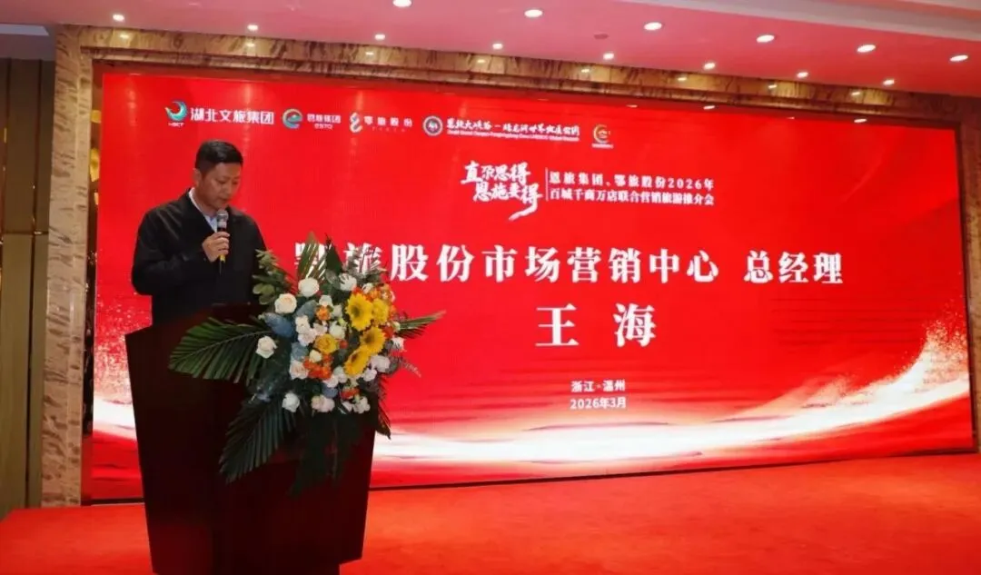 3月25日,恩旅集团、鄂旅股份、利川腾龙洞2026联合营销推介会在浙江温州成功举办。鄂旅股份市场营销中心总经理王海出席活动并致辞,温州市重点旅行社代表、主流媒体及嘉宾代表参会。