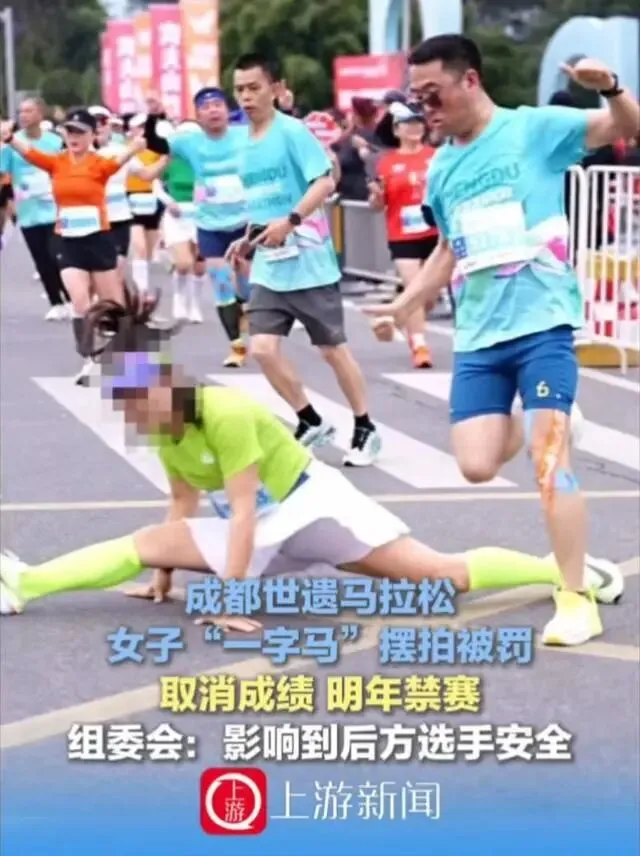 3月25日(发布) #成都世遗马拉松劈叉女 成都世遗马拉松,女子“一字马”摆拍被罚 取消成绩,明年禁赛 组委会:影响到后方选手安全#成都世遗马拉松 #主播说新闻