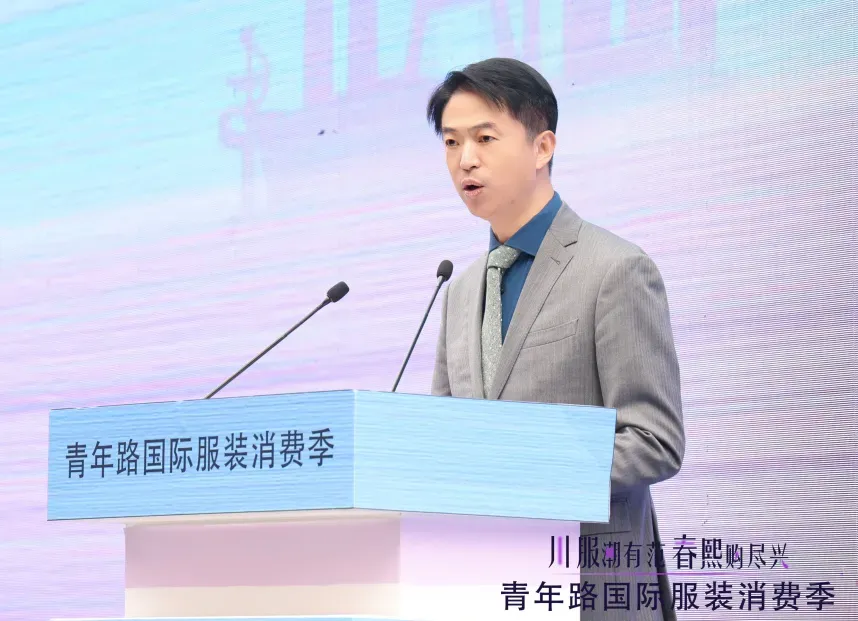 中国纺联党委委员、中国纺织工业企业管理协会常务副会长杨金纯在致辞中充分肯定成都及西部服装市场的区位优势与发展潜力。他指出,成都不仅是西南时尚消费中心,更是连接国内外市场的重要枢纽。青年路等传统商圈通过场景焕新、业态升级与数字融合,持续激发产业活力,构建具有辨识度的区域品牌集群和可持续发展的时尚产业生态。