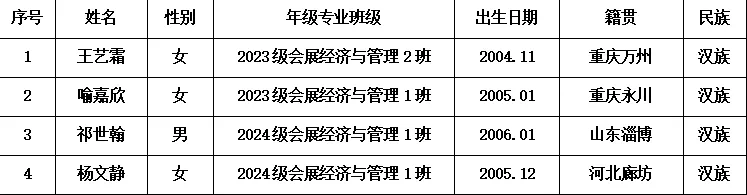 根据《中国共产党发展党员工作细则》和学校,学院党委发展党员工作的要求,经会展经济与管理学生党支部1年以上的培养教育和考察,王艺霜等4名同志基本具备党员条件。经听取培养联系人,党员和群众意见,支委讨论,现将王艺霜等4名同志列为党员发展对象。为进一步增强发展党员工作透明度,确保发展党员质量,更广泛地接受群众监督,特将拟列为发展对象的名单进行公示。