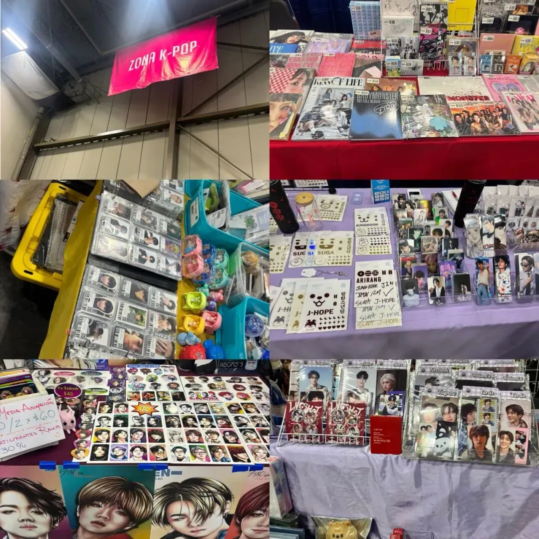 蒙特雷展会La Conve 65,适合混K-Pop和日漫圈的宝宝(我bu shi),一到购票窗口看到票价,我惊呆了,最便宜的票价是450比索,还有1k+比索的VIP票,来都来了,我还是决定买票去看看?这个展会分了很多区域,这是关于韩国的,这个区域的摊位有很多明星的小卡,韩国明星的妆容都好精致?: