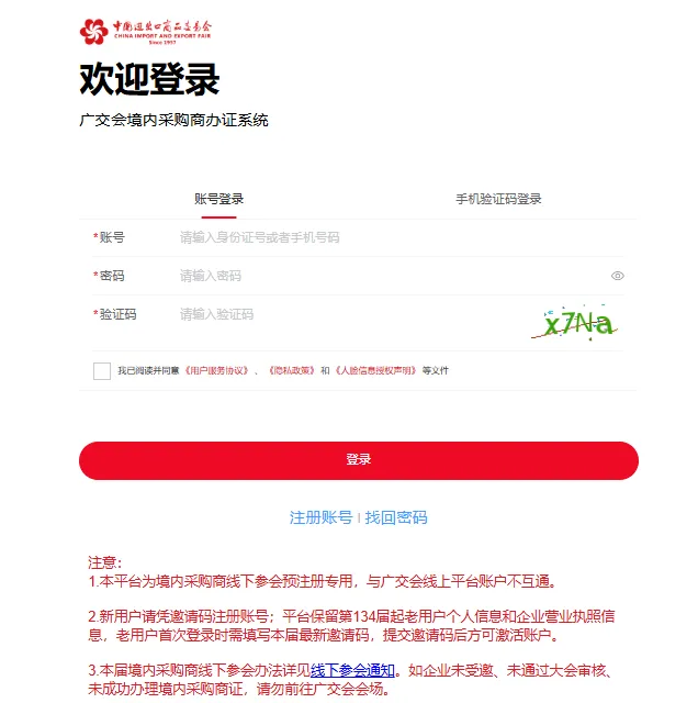 申请流程:进入境外采购商预登记入口,填写个人信息、企业信息、联系方式,上传证件照片(护照/通行证首页),等官方审核资质,一般1-3个工作日出结果,审核通过后收到确认短信/邮件,开展后凭审核通过的凭证,到展馆境外采购商办证处领取实体证件,或直接使用电子证扫码入场