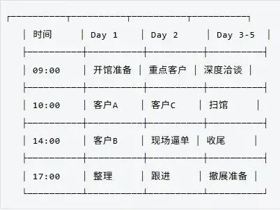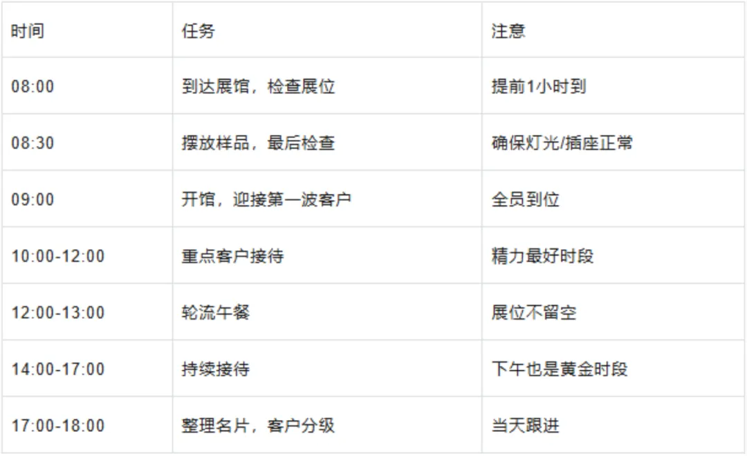 展会接待黄金6步:破冰打招呼→判断客户类型→引导看产品→挖需求→报价试探→要联系方式。