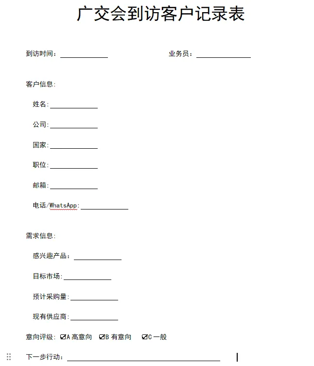 最后需要广交会到访客户记录表的朋友可以关注我后台+客服免费领取,注明来意哈。