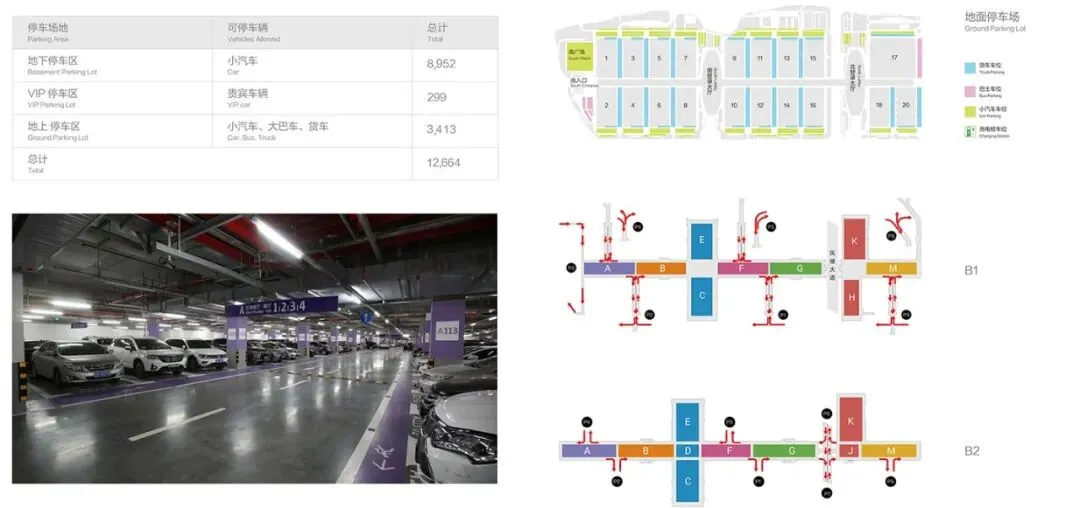 地面 + 地下共约 1.3 万个车位,部分带充电桩