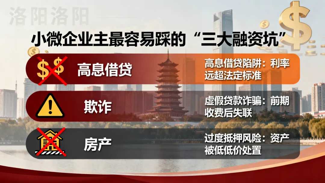 这种情况,我们几乎每天都在洛阳见到。作为服务过数百家本地企业主的融资顾问,今天我想把小微企业主最常踩的“三大融资坑”整理出来。这些坑,踩一个可能只是多花点利息,踩两个可能错失良机,三个全踩,企业可能就真的被拖垮了。